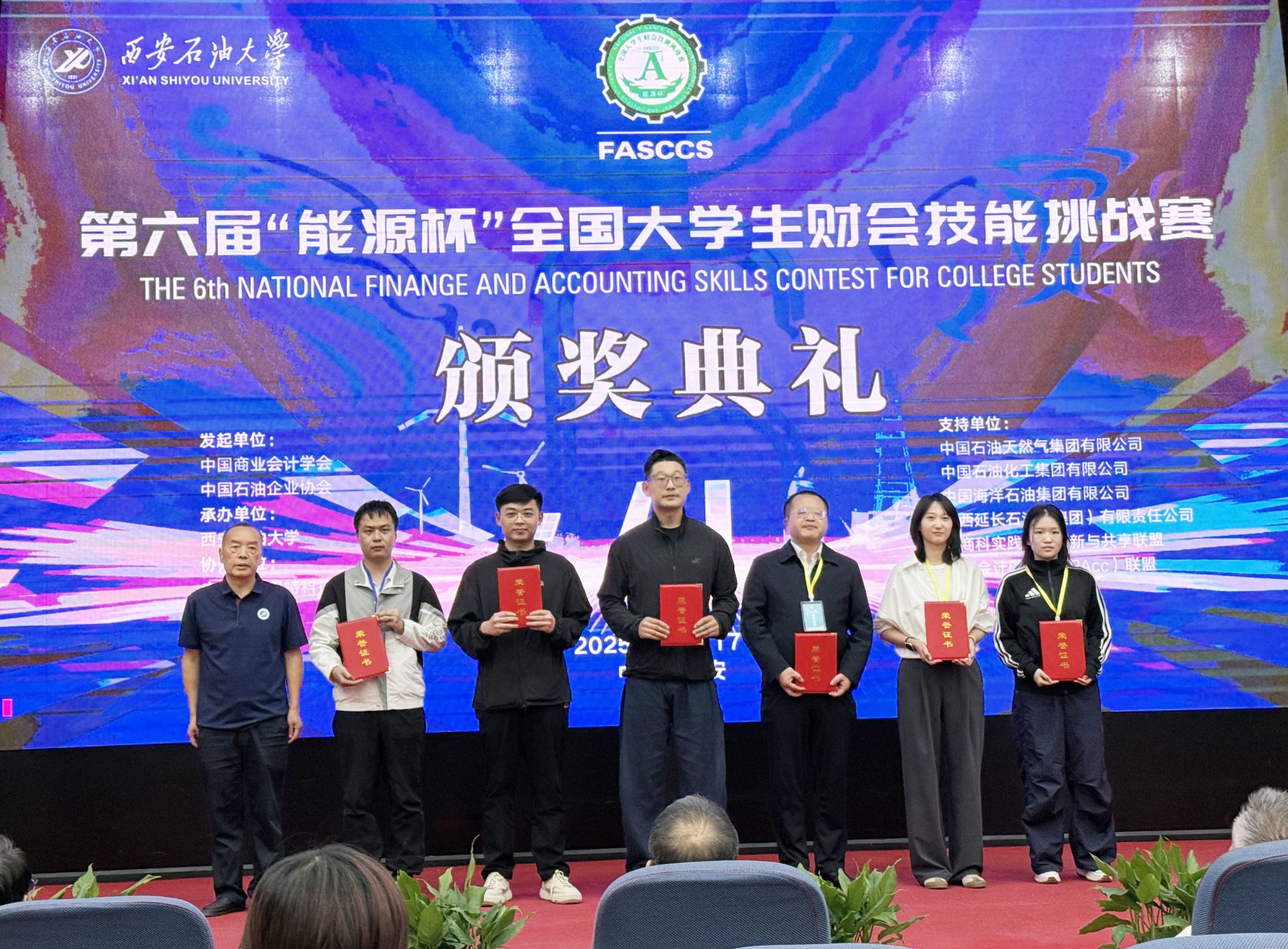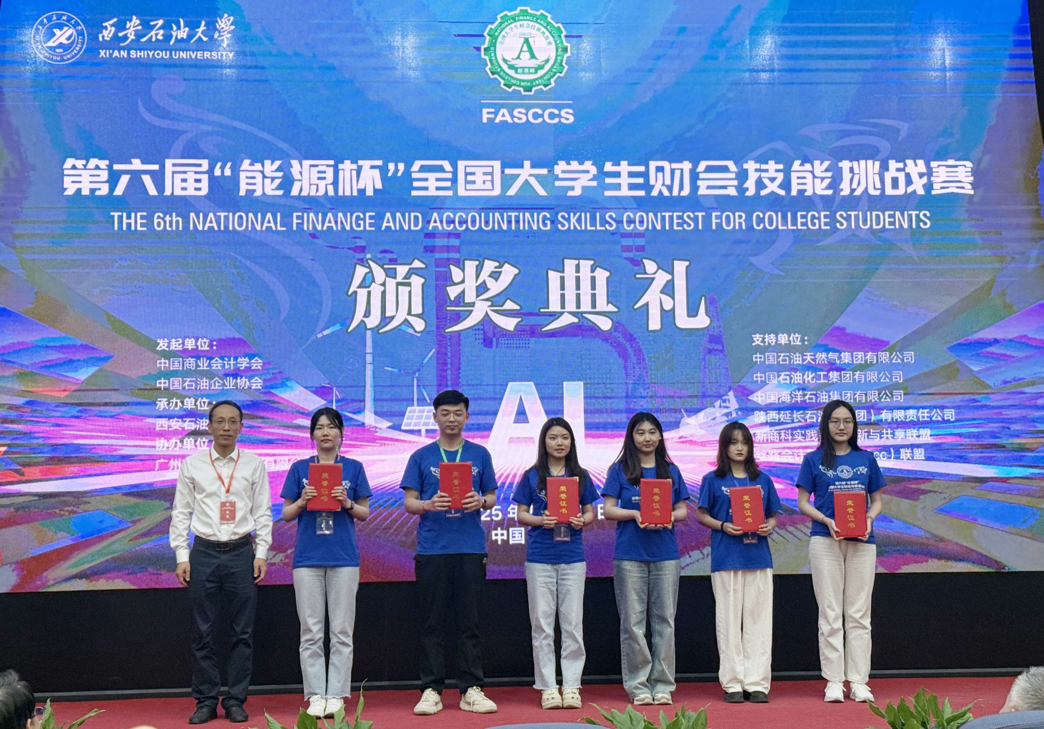 近日,第六届 “能源杯”全国大学生财会技能挑战赛在西安石油大学雁塔校区落下帷幕。由西工大BEAT365唯一官网学子组成的 “必胜客”代表队(队员王宇昕、贾晶晶、林飞彧、杨利通)在杨萍、陈琳两位教师的指导下,从全国 37 支参赛队伍中脱颖而出,一举斩获全国一等奖,西工大获评 “优秀组织单位”,杨萍、陈琳老师荣获 “优秀指导教师” 称号,实现赛事成绩与组织荣誉的双丰收。