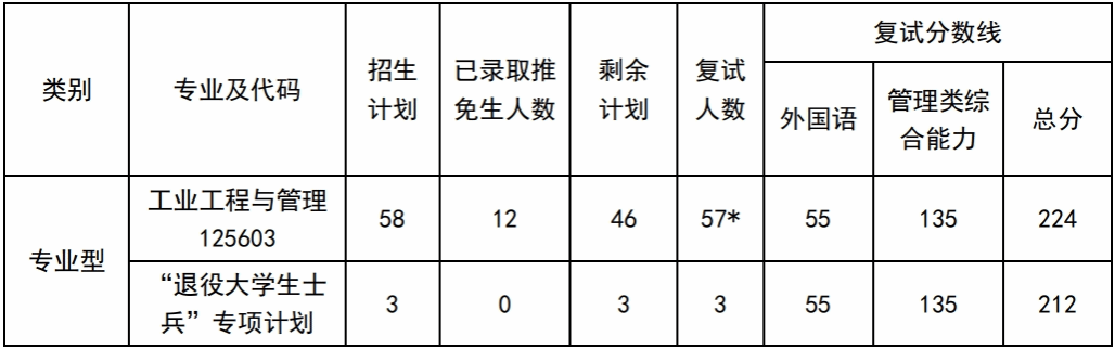 考核内容:《工业企业管理》(占复试总成绩15%)、《管理综合》(占复试总成绩15%)