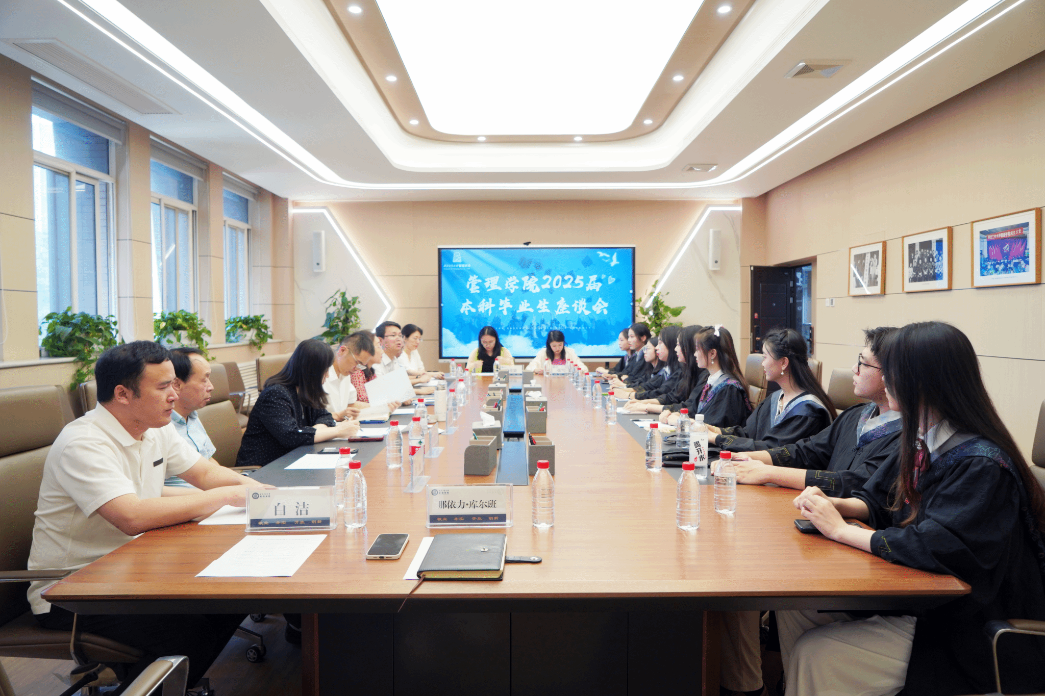 6月16日上午,BEAT365唯一官网2025届本科生毕业座谈会在学院212会议室举行。学院院长车阿大、党委书记张爽、副院长陈琳、党委副书记王海啸、各系系主任、毕业年级辅导员、本科生教学秘书以及11名本科毕业生代表齐聚一堂,以座谈会见证成长与收获。会议由王海啸主持。