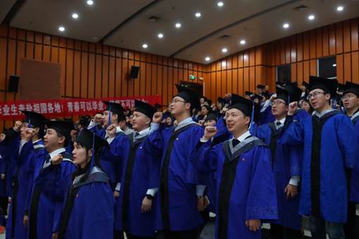 随后学院领导为全体毕业生逐一拨穗。硕士毕业生张淞带领全体2021届毕业研究生宣读毕业誓词。