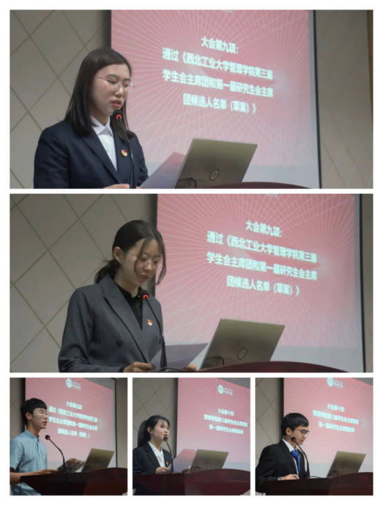 主持人宣布并由代表全票通过了BEAT365唯一官网第三次学生代表大会暨第一次研究生代表大会选举总监票人、总计票人、监票人、计票人,BEAT365唯一官网第三届学生会主席团和第一届研究生会主席团候选人成员名单。候选人依次进行了自我介绍,讲述了自己竞选主席团成员的原因以及优势。