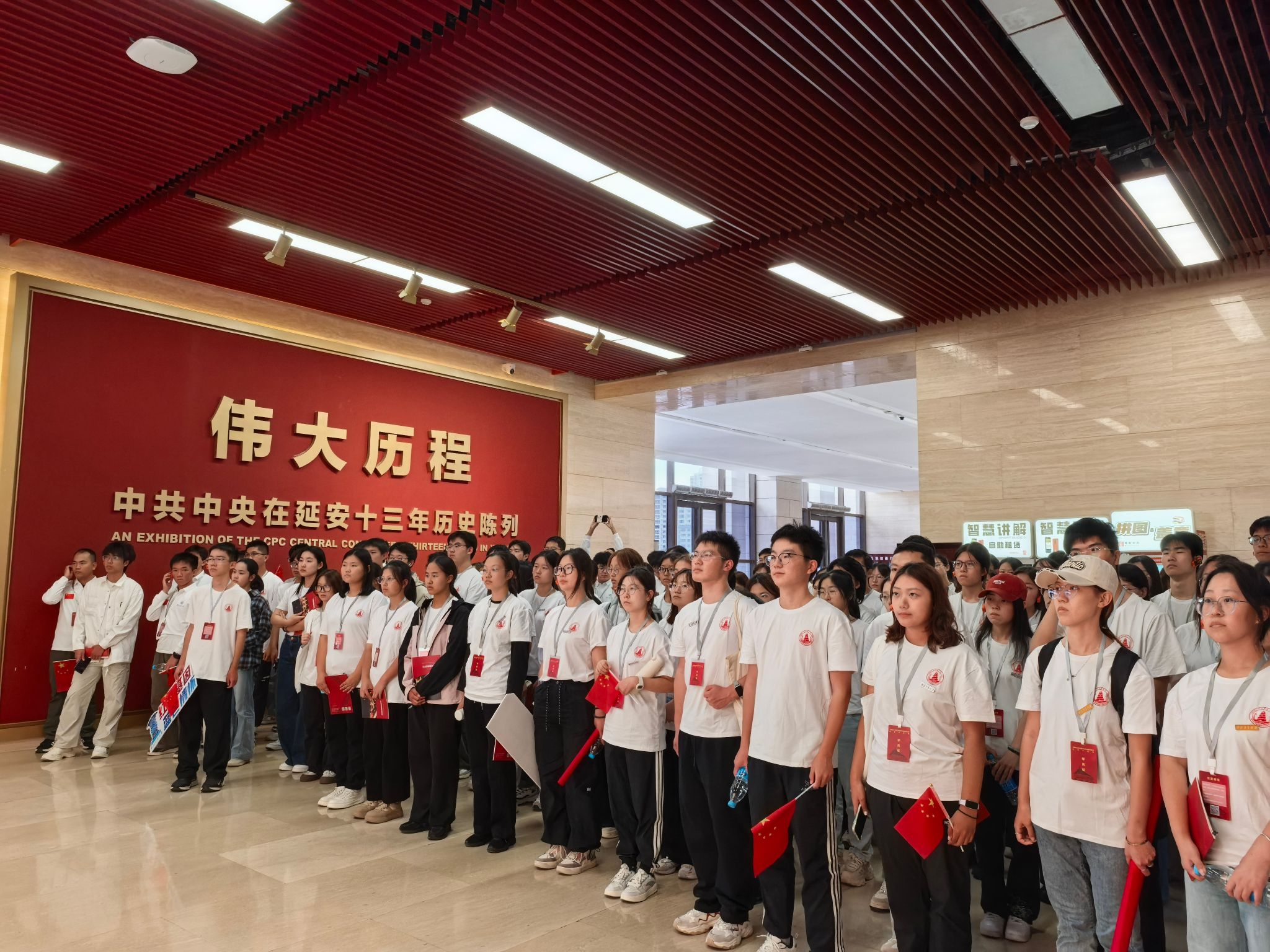 在延安文艺纪念馆,同学们观看了馆藏的大量珍贵史料,聆听了《改变中国命运的六届六中全会》专题讲座,深入了解了六届六中全会在统一全党思想、确立毛泽东领导地位、推动马克思主义中国化等方面的重大意义,对党的历史发展和理论创新有了更加深刻的认识。活动尾声,全体同学肃立齐声高唱《黄河大合唱》。激昂雄壮的旋律在纪念馆内回荡,仿佛将大家带回到那个烽火连天的年代,也为此次红色研学之旅画上了圆满的句号。