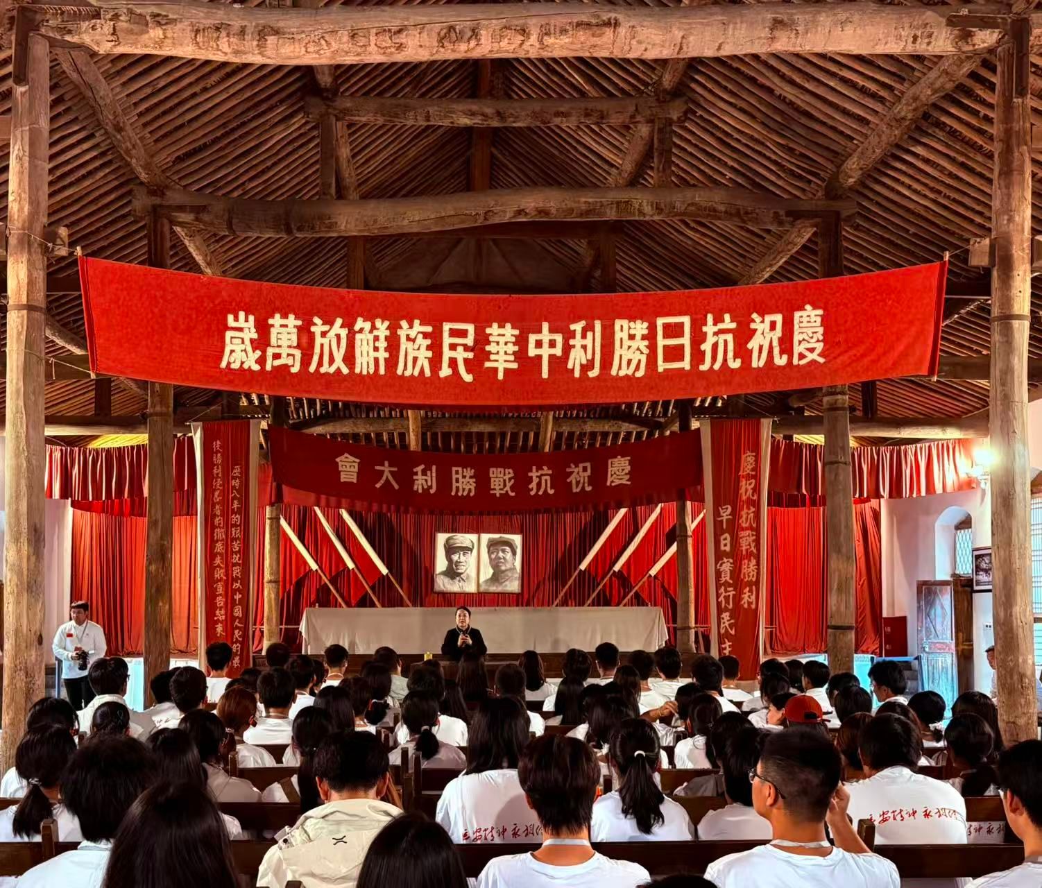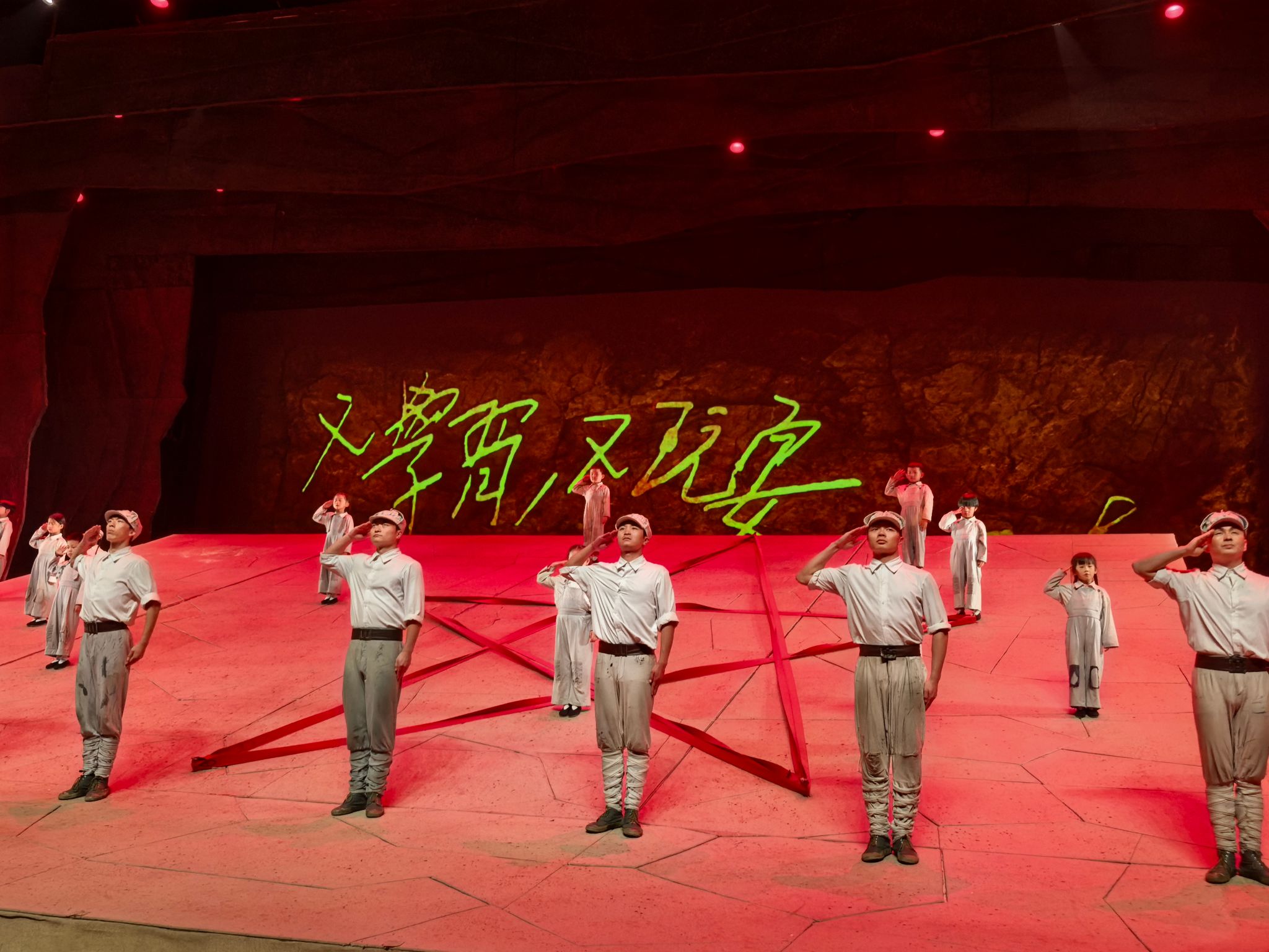 晚上,全体师生共同观看红色歌舞历史剧《延安保育院》。该剧以抗战时期延安保育院的真实历史为背景,演绎了保育人员在战火中保护革命后代的感人故事。