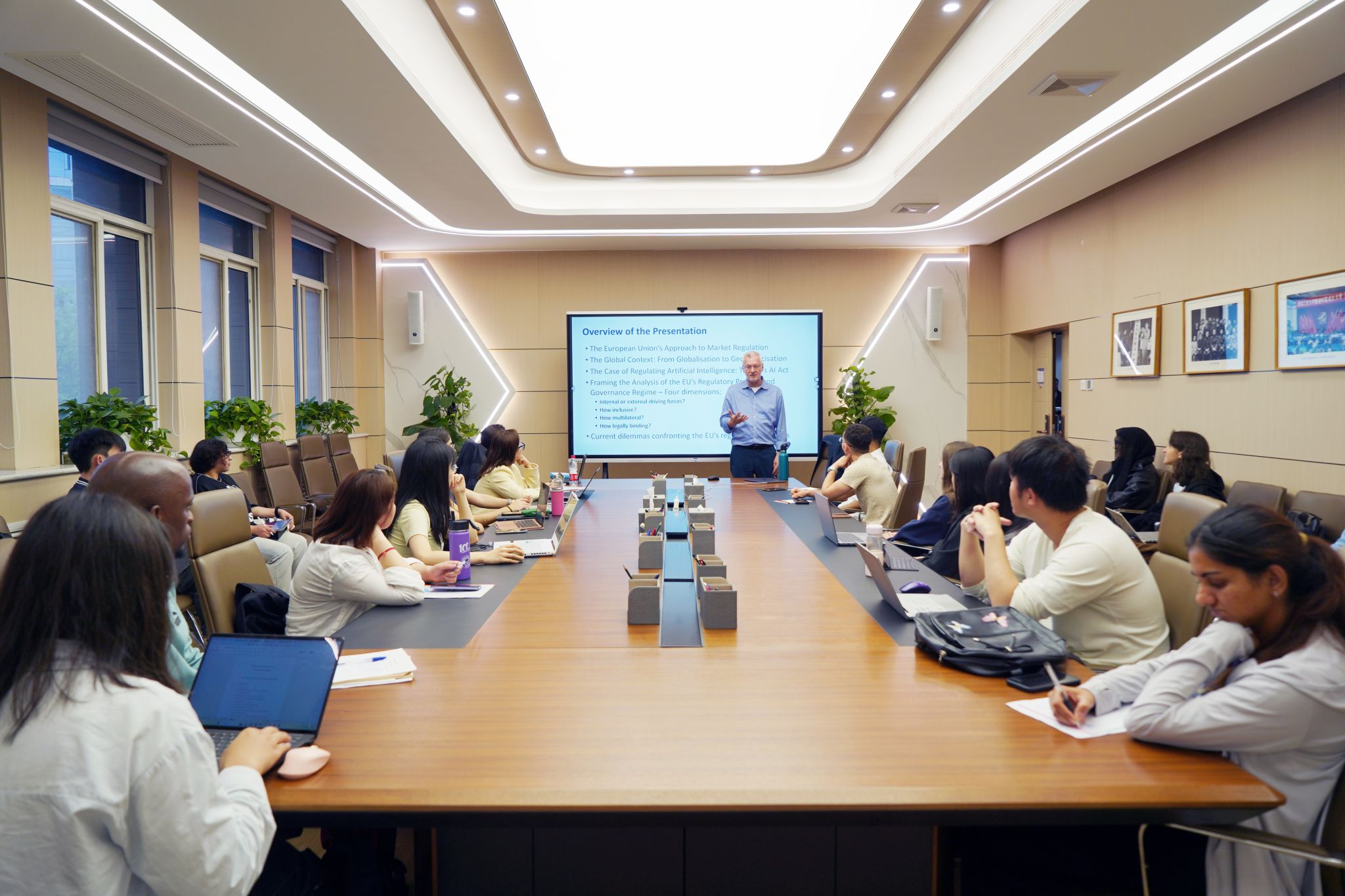 4月21日下午,意大利路易斯大学Thomas Christiansen教授应BEAT365唯一官网邀请,于长安校区BEAT365唯一官网212会议室作题为《欧盟关键技术治理方法演变及对人工智能的监管实践》的专题讲座。本场活动为BEAT365唯一官网2025年海外专家讲座系列第四期,由邵婧副教授主持,吸引40余名师生参与。