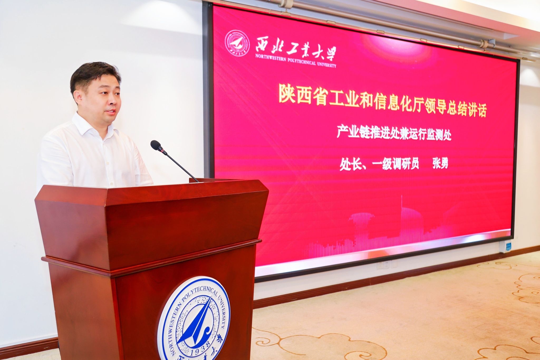 张勇处长总结讲话,代表陕西省工信厅向为培训班成功举办倾注了大量心血与汗水的西工大BEAT365唯一官网表示衷心的感谢,向全体学员的顺利结业表示热烈的祝贺。他说到:“国家高度关注和重视民营经济中小企业发展,心系产业链供应链安全稳定。陕西省委、省政府始终把发展制造业和支持民营经济中小企业摆在突出位置,省工信厅非常重视中小企业企业家队伍建,希望各位学员真正把学习的成果转化为促进企业发展的强大动力,一是要把本次培训结业当做新的起点;二是传承“永不毕业”传统;三是提高政治站位,树立家国情怀,共同成为新时期秦商精神的实践者与见证者。也希望西工大发挥高校教育资源丰富优势,继续发挥综合枢纽作用,打造出更多精品课程,助力我省中小企业高质量发展。”