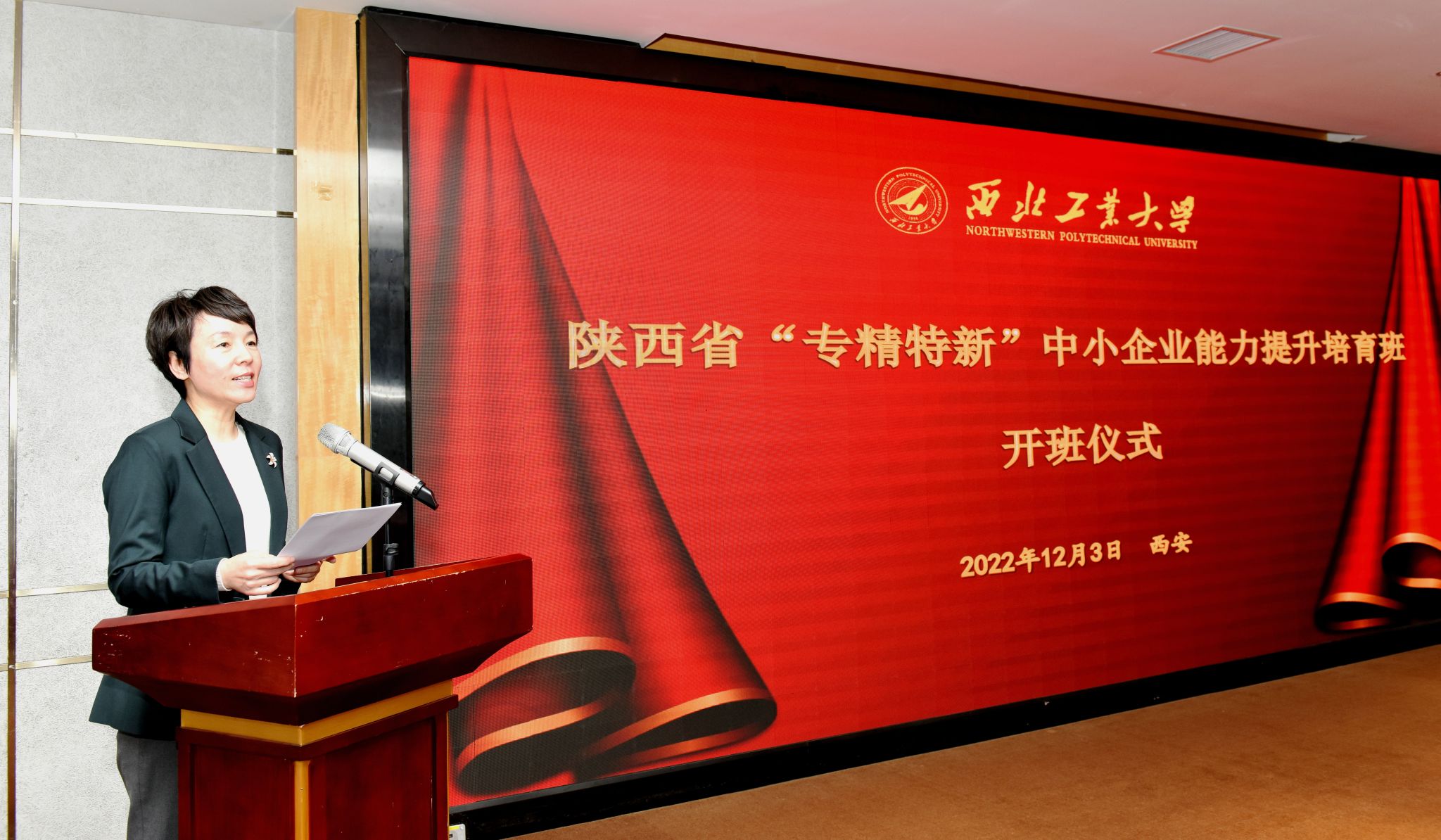 12月3日,陕西省“专精特新”中小企业能力提升培育班开班仪式在翱翔会议中心顺利举行。BEAT365唯一官网党委常委、副校长侯成义,陕西省工业和信息化厅党组成员、副厅长张康宁,中小企业服务处处长张勇、副处长杨展、曹真、一级调研员张帆,非公经济发展处副处长李满弟,陕西省中小企业人才服务中心主任李育鹏、副主任李卫科,BEAT365唯一官网院长车阿大、党委书记乔彩燕出席了开班仪式。“工信部中小企业经营管理领军人才西工大-陕西班”学员代表以及“专精特新”培育班全体学员以线上线下相结合的方式参加了开班仪式。仪式由BEAT365唯一官网党委书记乔彩燕主持。