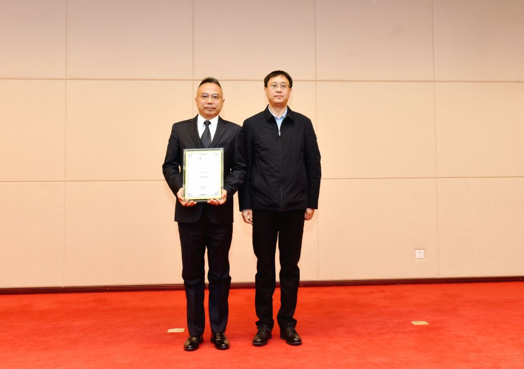 陕西省中小企业人才服务中心李卫科副主任向结业班仝根利班长颁发“卓越班长”荣誉奖牌。