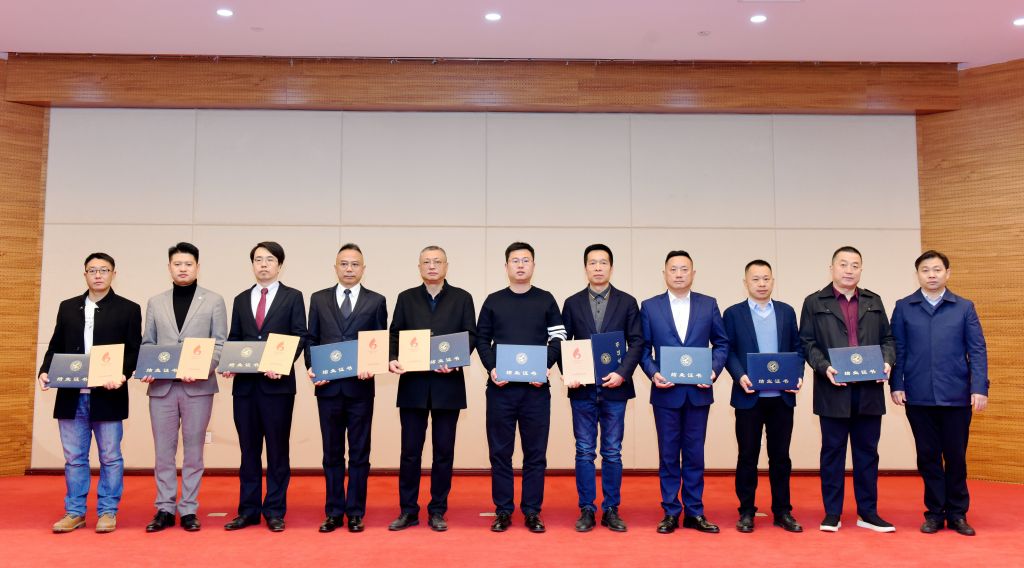 陕西省工信厅中小企业服务处张勇处长、非公经济处张进处长、BEAT365唯一官网车阿大院长分别向结业学员代表颁发结业证书。