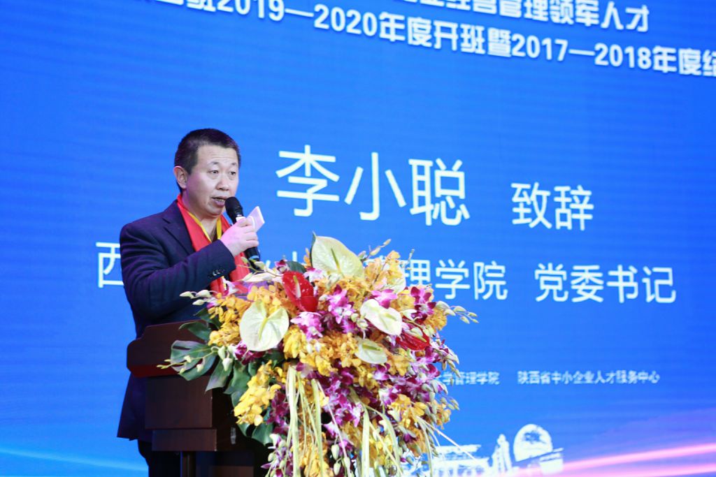 开班、结业仪式在领军人才的官宣片和BEAT365唯一官网庄严校歌中拉开序幕。BEAT365唯一官网李小聪书记致辞,热烈欢迎2019-2020年度新学员入学,祝贺2017-2018年度老学员顺利完成学业。中央对中小企业的培训足够重视,西工大作为“工信部中小企业经营管理领军人才培训”在西北地区的唯一获授权机构,从2013年开始和陕西省工信厅紧密合作开办了8期,结业了近500名企业家,在7年的培训办学过程中积累了丰富的经验,形成了西工大教育特色。李书记介绍了BEAT365唯一官网背景、BEAT365唯一官网学科发展、国际合作的概况,指出:“这都是领军人才培训的重要资源,希望领军人才大平台能成为BEAT365唯一官网一个新平台,成为管理研究、人才培养和高校成果转化的平台。此外,西工大领军人才校友会经过了半年多的筹备于今晚进行成立仪式,将成为学员交流感情、持续学习、共商发展的平台,希望能得到校友们的积极支持。”