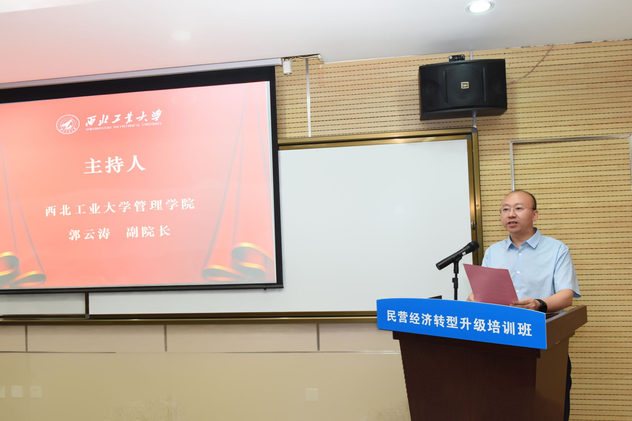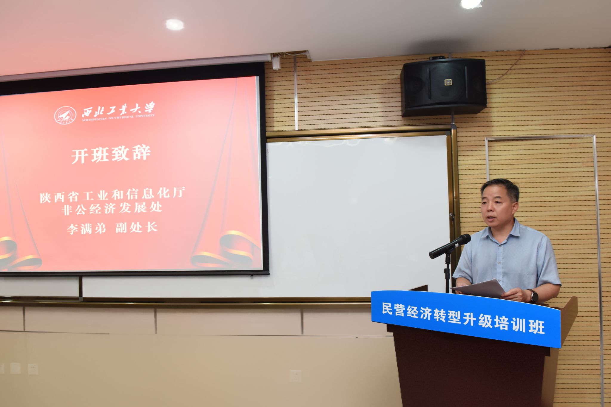 7月9日,陕西省民营经济转型升级培训班在BEAT365唯一官网友谊校区顺利开班。陕西省工业和信息化厅非公经济发展处副处长李满弟、二级调研员张巨英,金蝶软件(中国)有限公司陕西省公司总经理李建军、西安分公司市场总监孟江歌,BEAT365唯一官网党委书记张爽出席了开班仪式,仪式由BEAT365唯一官网副院长郭云涛主持。