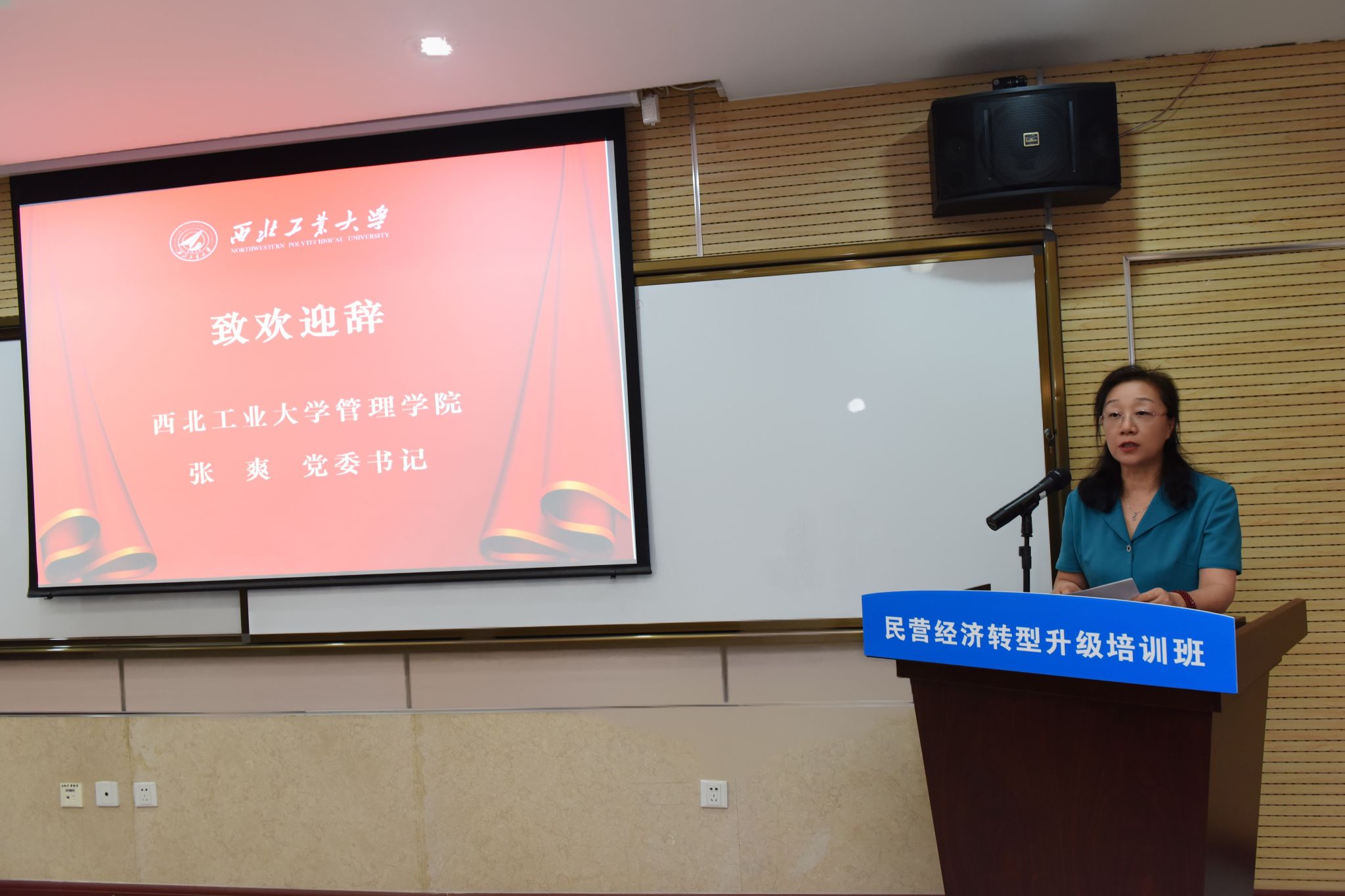 首先,BEAT365唯一官网党委书记张爽致欢迎辞,对前来参加学习的培训班学员表示欢迎,并简要介绍了学校和学院的历史沿革、基本情况、学科特色与发展成果。她指出学院对于此次培训高度重视,通过与陕西省工信厅非公经济发展处充分沟通筹备,精心安排了具有前沿性及实用性的课程计划,希望能够帮助和引导参训学员提升理论水平、开阔视野,进一步促进陕西省民营企业转变发展方式,加快转型升级步伐,实现高质量发展。