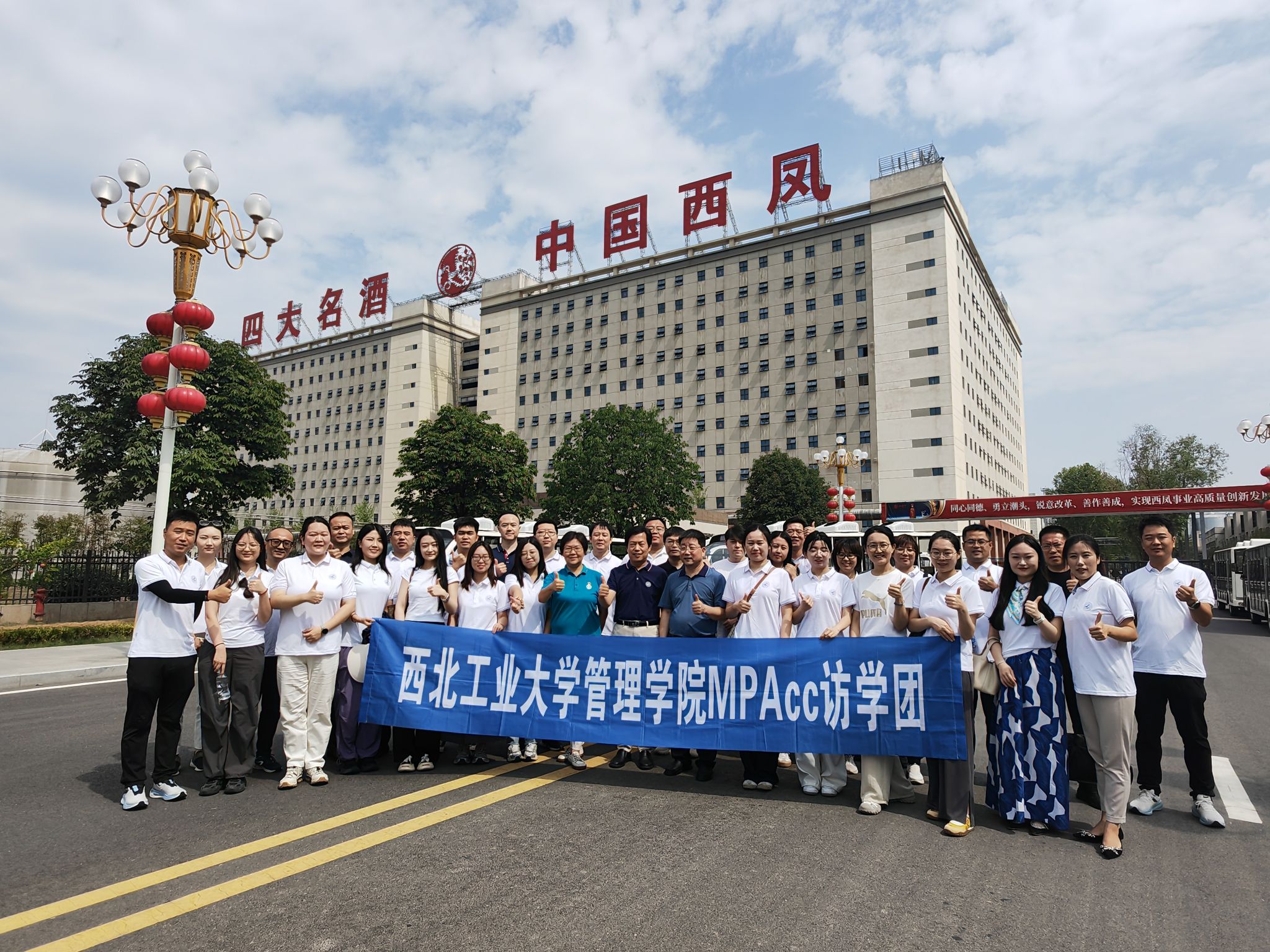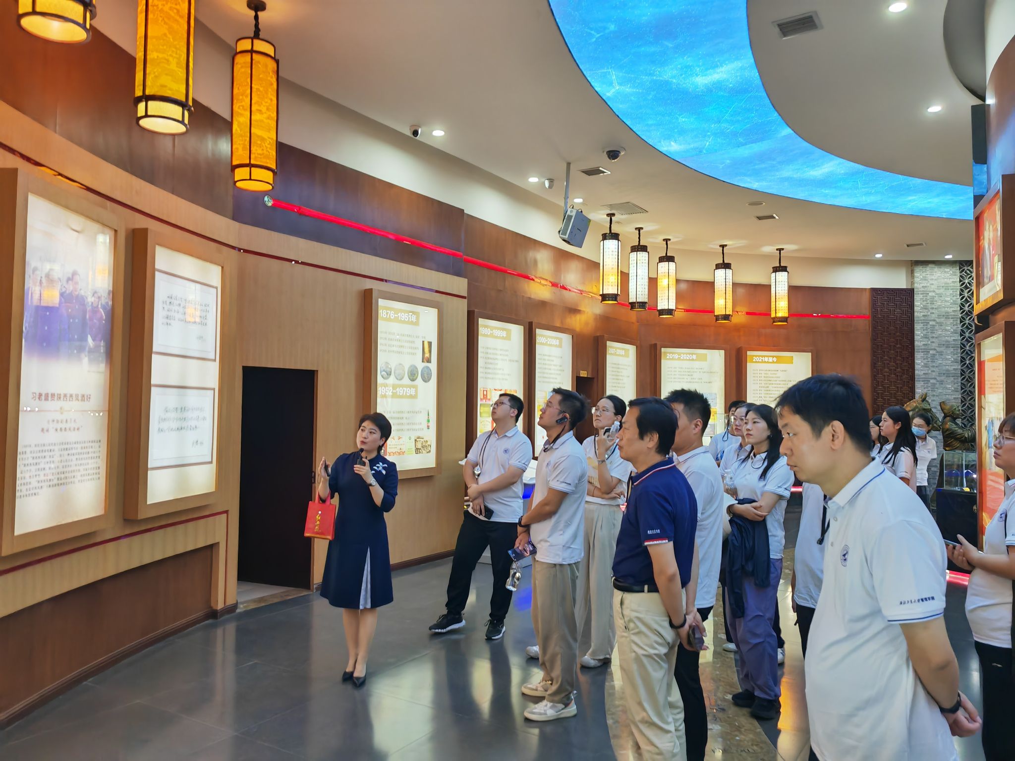 访学团参观了华山论剑党建馆以及西凤集团的制酒车间、制曲车间和成品包装车间,了解了作为国家级非物质文化遗产的西凤酒酿造工艺、制曲工艺,参观了成品酒的现代化灌装包装线。最后,访学团参观了西凤酒文化馆和国宝级储酒容器大酒海,深入了解了西凤酒所蕴含的古老的中华文化与历史传承。