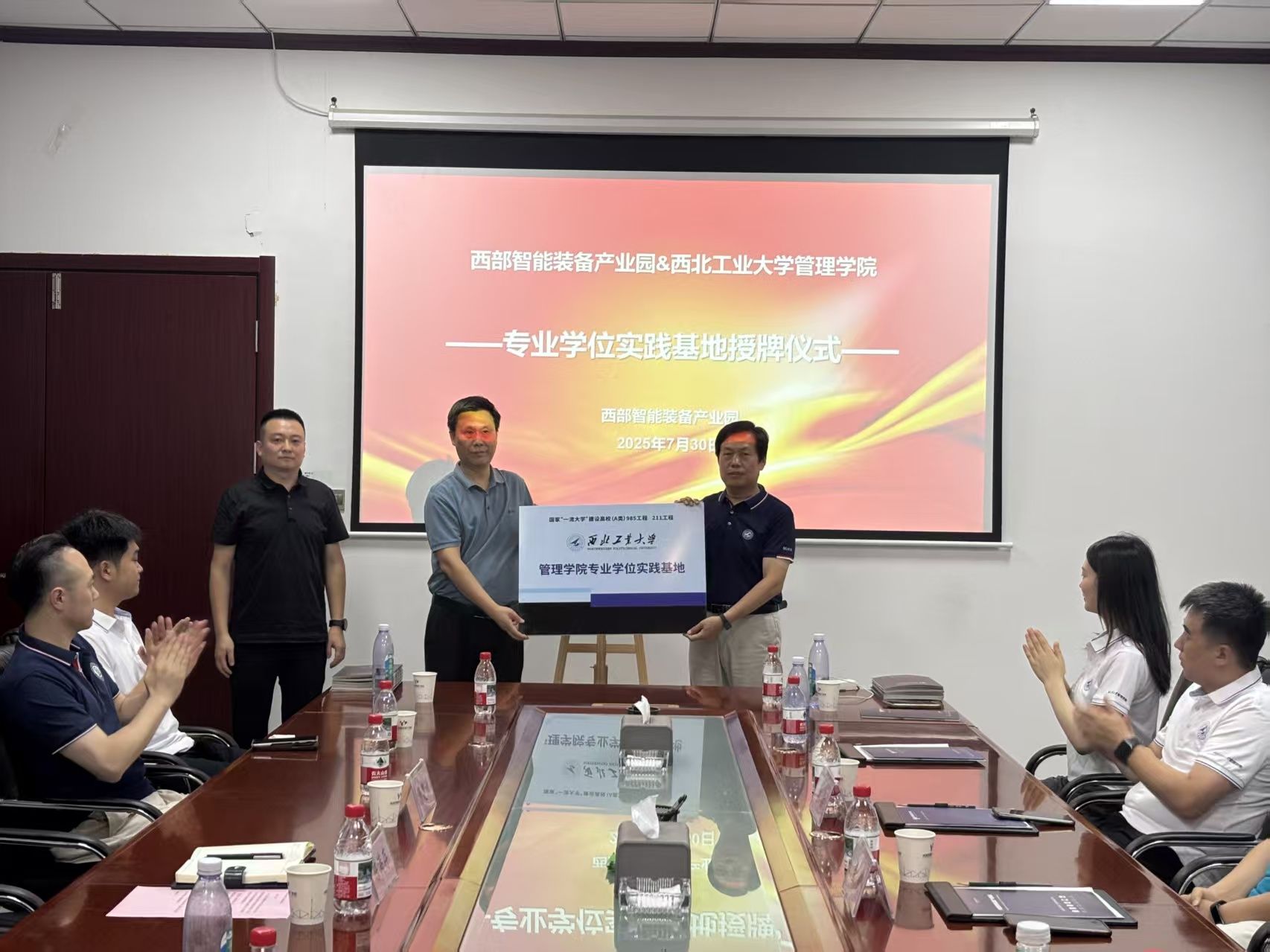 30日上午,访学团走进西部智能装备产业园。访学团首先参观了部分企业的生产线,了解企业数字化生产的流程与管理。参观结束后,金帆主任与西部智能装备产业园发展公司副总经理杨建洲共同为BEAT365唯一官网专业学位实践基地揭牌。在座谈交流环节,管委会发展中心副主任陈满存详细介绍了产业园的经营发展情况,将目前所面临问题和未来规划向全体师生进行了阐述。