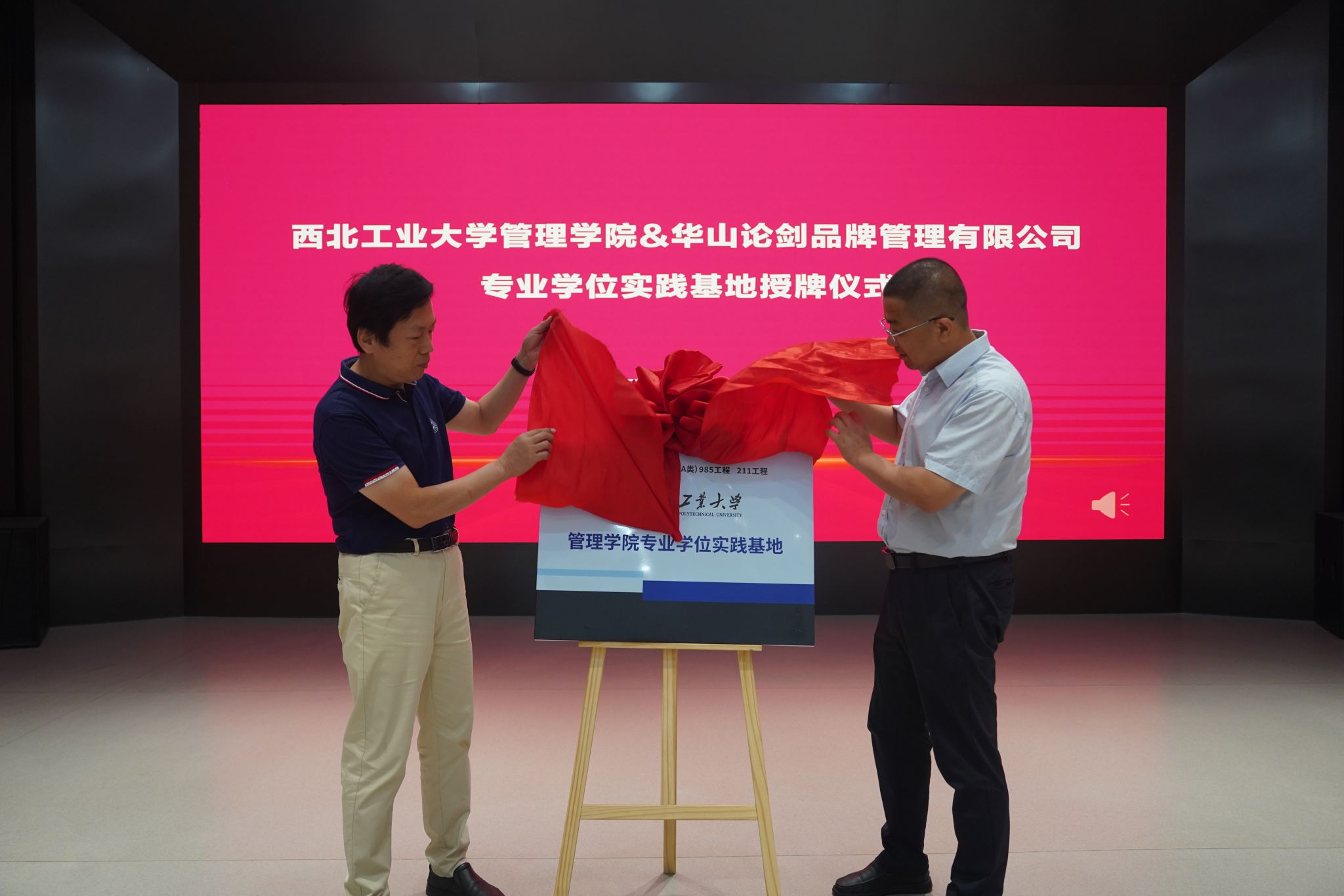 8月1日上午,访学团来到宝鸡市凤翔区西凤集团参访。在华山论剑产业基地,金帆主任和华山论剑品牌管理有限公司副总经理刘博强共同为BEAT365唯一官网专业学位实践基地揭牌,金帆主任与副总经理张堆民代表校企双方互赠纪念礼物。