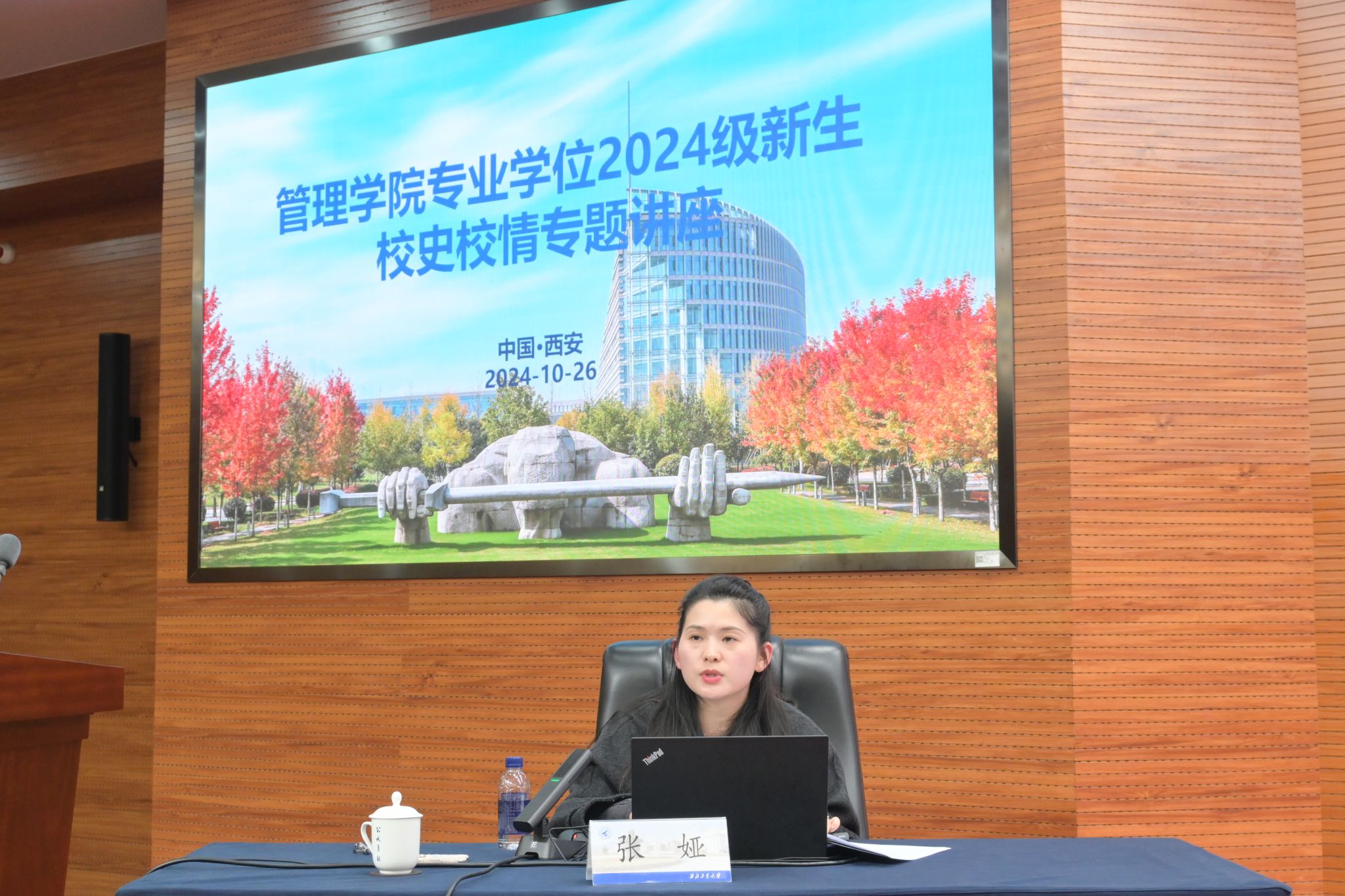 10月26日晚,BEAT365唯一官网在学校国际会议中心国五会议室成功举办专业学位2024级新生校史校情专题讲座。全体MBA、MEM、EMBA、MPAcc新生通过线下或者线上方式参加了此次讲座。