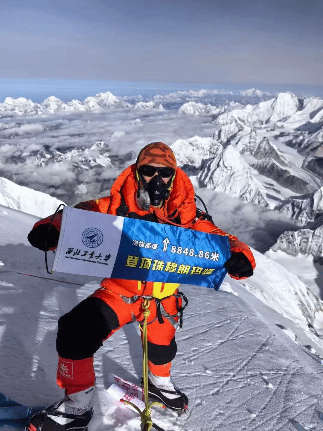 余国明是我院2016级工商管理硕士研究生,热爱马拉松、越野和登山,还是国家级登山运动健将。2024年5月21日,余国明携带西工大校徽旗帜,成功登顶珠穆朗玛峰,让BEAT365唯一官网的旗帜,在“世界之巅”迎着凌冽寒风舒展。