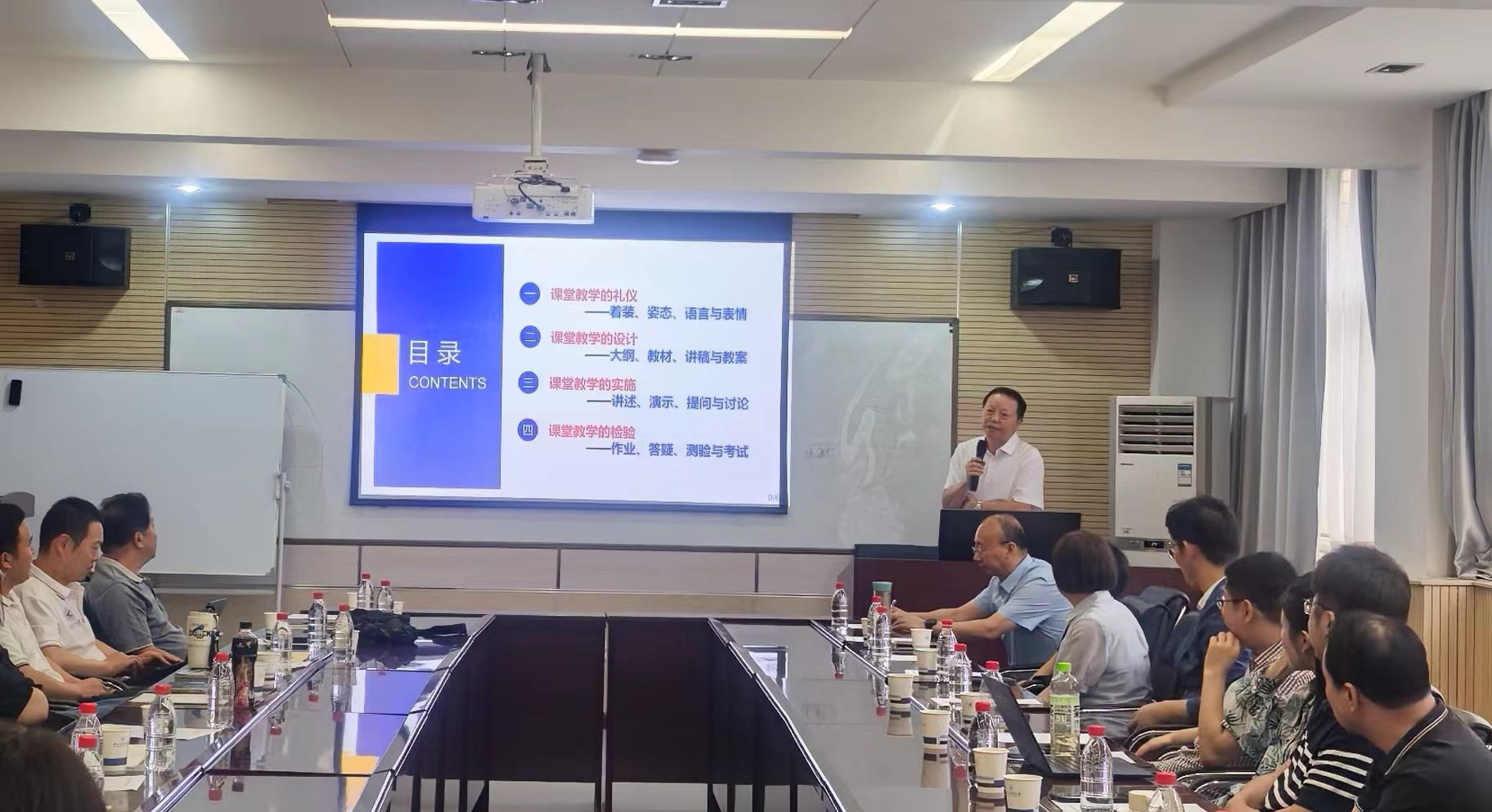 会议首先由航空学院杨智春教授作《课堂教学的基本方法和课程思政设计》的主题报告,杨智春教授从课堂教学的礼仪、设计、实施、检验几个方面,用幽默风趣的语言,进行了深入浅出的讲解,在课程思政设计部分,杨智春教授分享了如何巧妙地将思政元素融入专业课程,做到“润物细无声”,还结合自身丰富的教学经验,为参会的教师提供了许多实用的教学方法和建议。接着,学院专业学位督导组组长郭鹏教授对一年来专业学位督导听课情况进行了反馈和交流,对老师们的教学态度、教学准备和课堂表现给予了充分的肯定,并对听课中发现的问题进行逐一分析。在分享交流环节,与会教师结合专业学位学生的特点分别从课前准备、课堂组织、师生互动等方面做了分享交流,会场气氛轻松愉快,老师们纷纷表示受益良多。