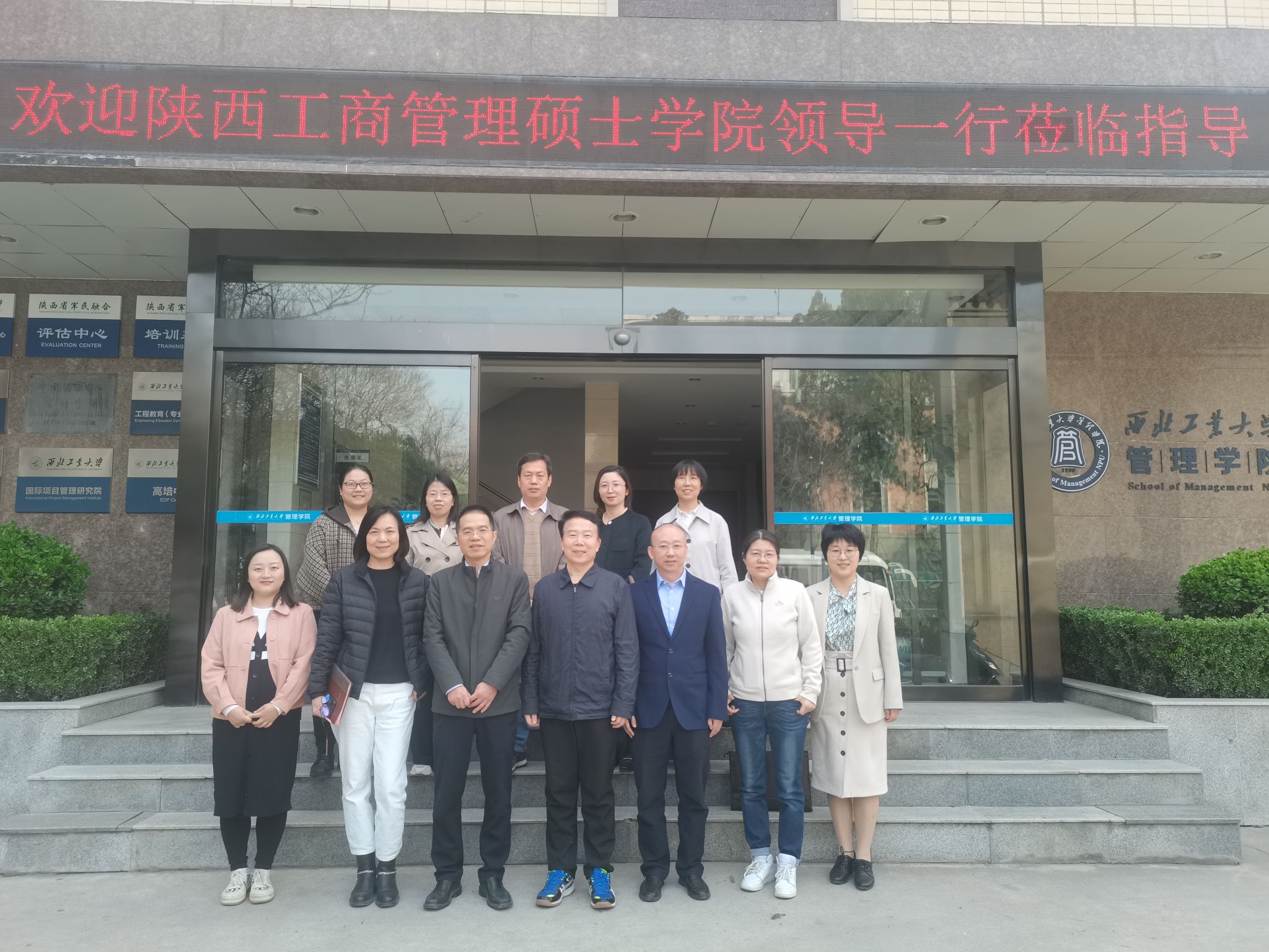郭云涛副院长就我校陕西MBA招生渠道拓展、综合训练课程开展、论文质量把控、实践基地建设及学生活动开展方面的经验、举措与成效进行了汇报交流。
