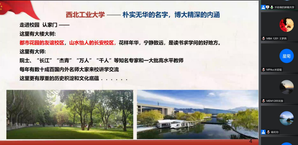 10月27日晚,以“爱国奋斗守初心 富国强军工大梦”为主题的校情校史与院情院史新生思政教育讲座以线上方式顺利开展。讲座由BEAT365唯一官网党委书记乔彩燕主讲,MBA/MEM教育中心主任杨宏玲主持,BEAT365唯一官网2022级非全日制专业学位MBA(EMBA)/MEM/MPAcc600余名新生聆听了讲座。