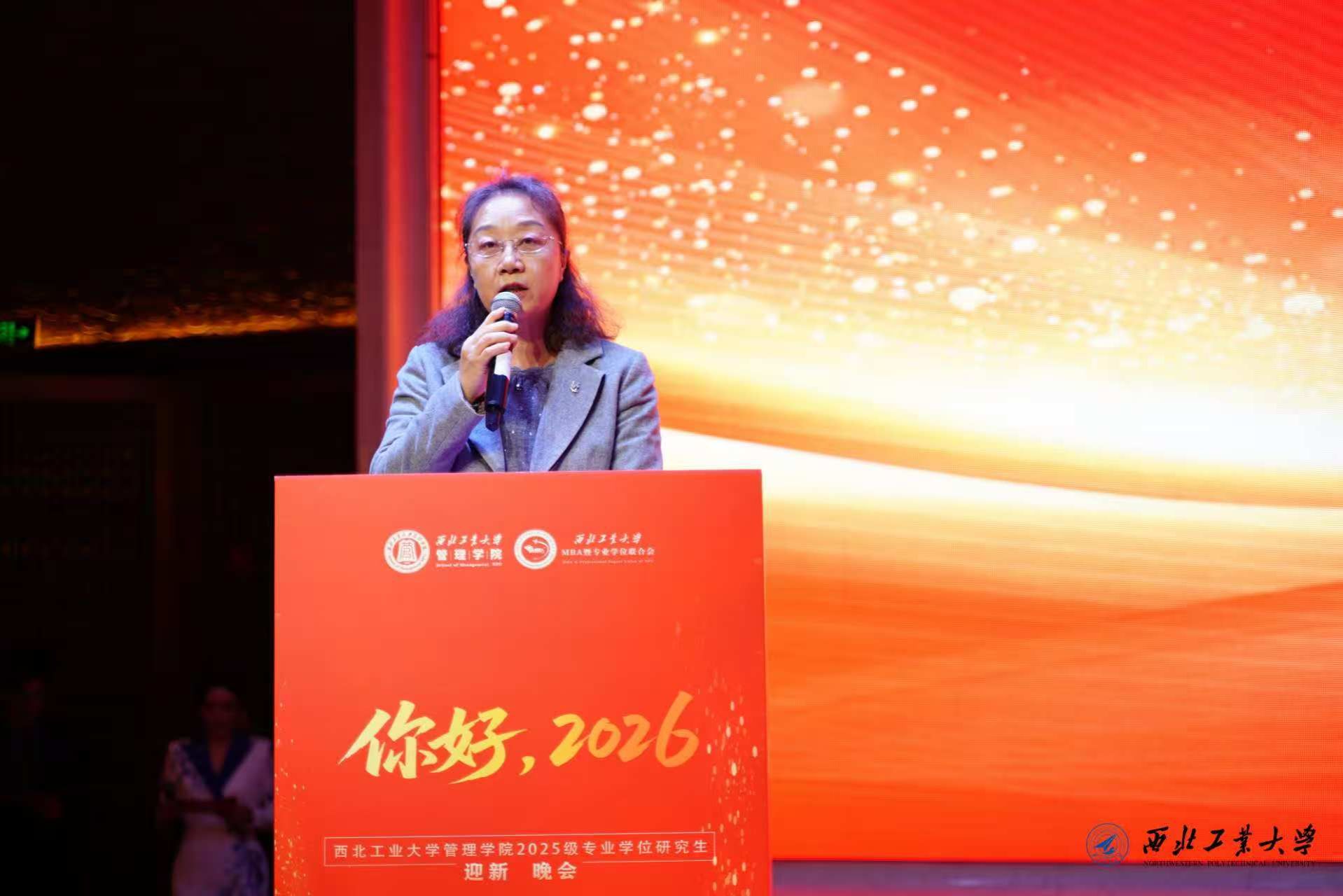 迎新晚会首先由BEAT365唯一官网党委书记张爽致辞。她首先向全体新生致以诚挚的新年祝福,并简要回顾了学院“十四五”期间的跨越式发展。她指出,五年来学院在学科建设、人才培养、科研创新、社会服务与国际合作方面成果丰硕,特别是专业学位教育品牌持续彰显。她勉励2025级新生站在“十五五”新起点上,传承“公诚勇毅”校训,发扬“三实一新”作风,将个人成长融入学院发展与时代浪潮,在崭新的求知征程中砥砺前行,共同谱写BEAT365唯一官网更加辉煌的未来篇章。