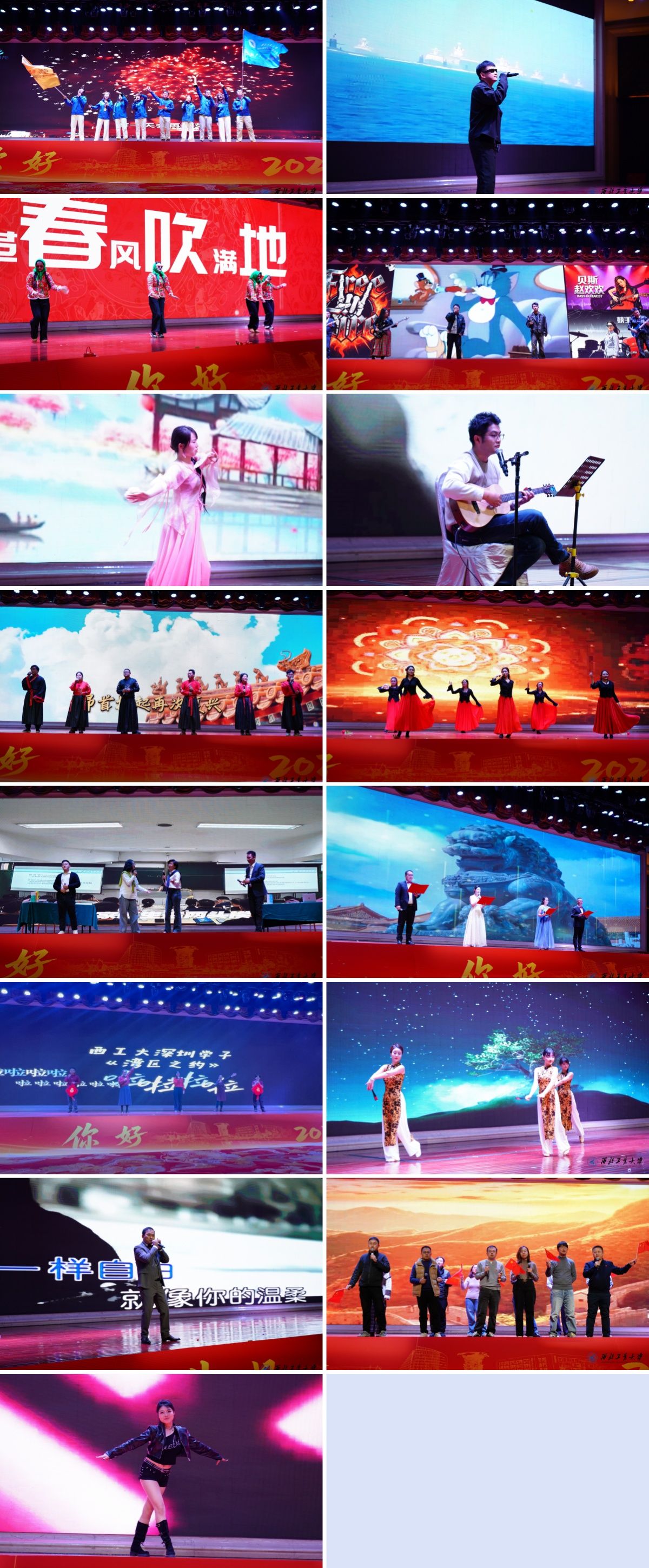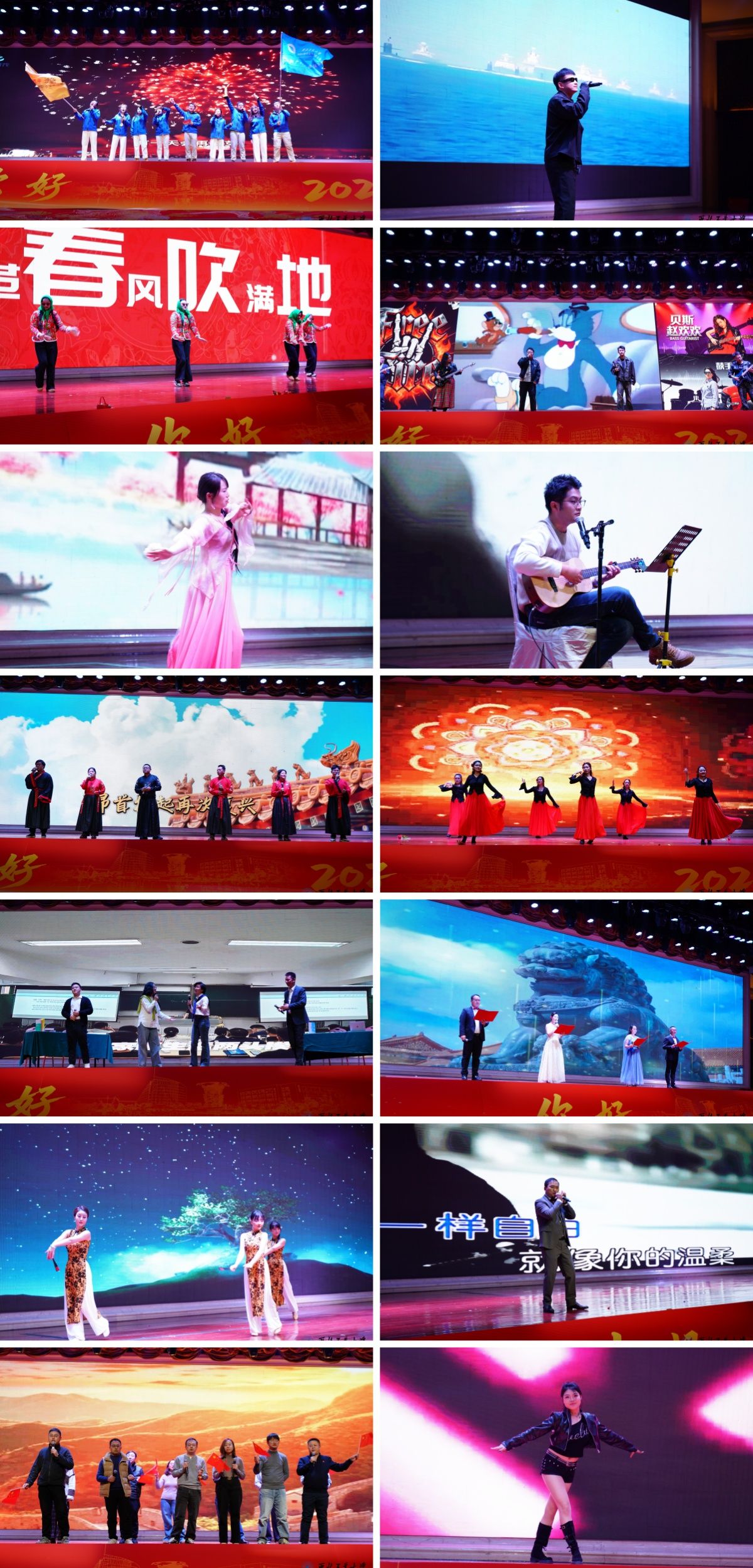 晚会节目精彩纷呈,充分彰显了管院学子的人文素养与创新精神。沙友合唱团以《歌曲串烧》再现“沙漠挑战赛”的团结拼搏;说唱《麒麟》以铿锵韵律诠释文化自信;《改革春风吹满地》以欢快舞步唤醒时代记忆;乐队《new boy》在架子鼓与吉他的交织中奏响青春乐章;古典舞《相思遥》《走卒》刚柔并济,贯通古今情怀;弹唱《温柔》勾勒青春心事;合唱《天地龙鳞》以磅礴旋律展现奋斗豪情;新疆舞《巴郎仔》以异域风情点燃全场热情;情景剧《工大人Fighting》生动演绎“三实一新”的育人实践;朗诵《月光下的中国》抒发深沉家国情怀;湾区歌曲串烧以多元曲风唱响湾区风采;国风爵士《城里的月光》将古典意境融入现代节奏,勾勒中西合璧的韵味;独唱《像风一样自由》诠释生命如风的姿态;合唱《大中国》以歌声礼赞祖国;爵士舞《Black Veil Bride》以炫技舞步释放青春能量。多元节目交织成一场融合传统与现代、激情与温情的艺术盛宴。