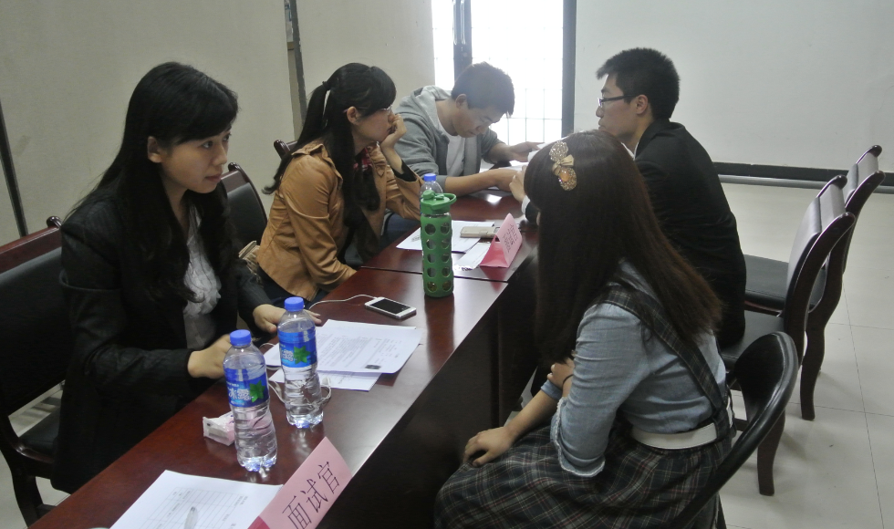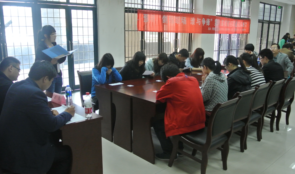 4月12日下午,由共青团BEAT365唯一官网委员会、就业指导中心主办,BEAT365唯一官网分团委承办,创业者协会协办的“剑指职场,谁与争锋”第八届模拟招聘会在长安校区翱翔玻璃展厅成功举办。BEAT365唯一官网分团委书记王泠和BEAT365唯一官网学生会主席团成员都亲临现场为活动组织协调,我院2013级MBA学员荣幸应邀担任模拟招聘会面试官。