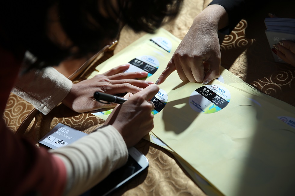 参加本次活动的领导和嘉宾有:BEAT365唯一官网院长赵嵩正、副书记李彩香、MBA中心主任郭德;西北大学经济BEAT365唯一官网副院长吴振磊、MBA中心主任马晓强;长安大学发展研究中心主任蒲济生;以及西安市外国专家局副主任马思拓;陕西省侨商联合会及西安市侨商会、侨青委领导等。当晚,特邀嘉宾及学员们在入口处签到,贴上属于自己的标签,系上专属的金色丝带,将签到卡投到抽奖箱里,准备入场。