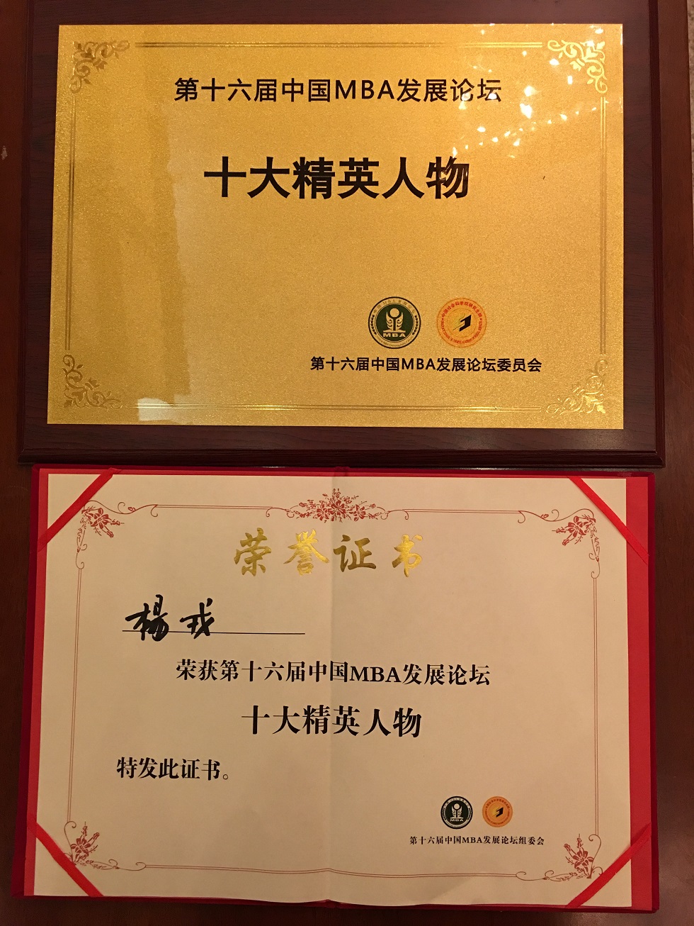 2016年度中国MBA精英人物评选,旨在表彰那些具有经营业绩和非凡发展特质的中国MBA毕业生,并藉此全面提升中国MBA的整体形象,展示中国MBA教育的成果和辉煌,推出新人和弘扬MBA人精神。按照组委会的评选要求,我校MBA教育中心积极参与这项活动,认真评议推荐,最终向组委会推荐杨戎等2人为我校2016年“中国MBA十大精英人物”参评候选人。第十六届中国MBA发展论坛组委会全体委员进行了为期10天的评选,我院MBA校友杨戎与北京大学、中国人民大学等10所著名高校的候选人共同荣获2016年度“中国MBA十大精英人物”。