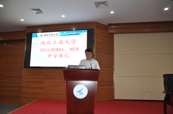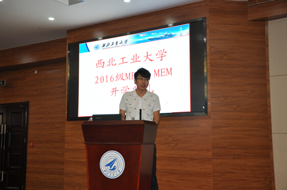 最后,2016级MBA学员郭鑫、MEM学员冯晓晖代表新学员发言,表示作为西工大新的一员非常骄傲,一定对未来的学习做好规划,努力学习,提高分析问题和解决问题的能力。
