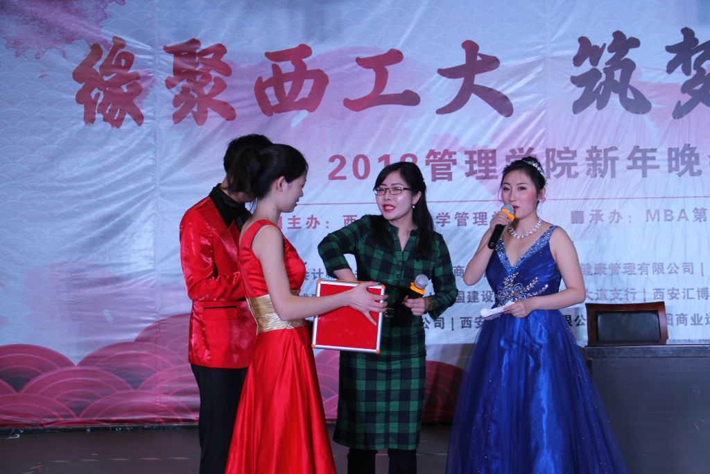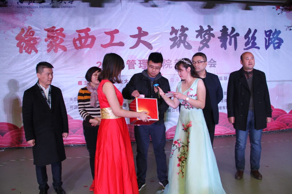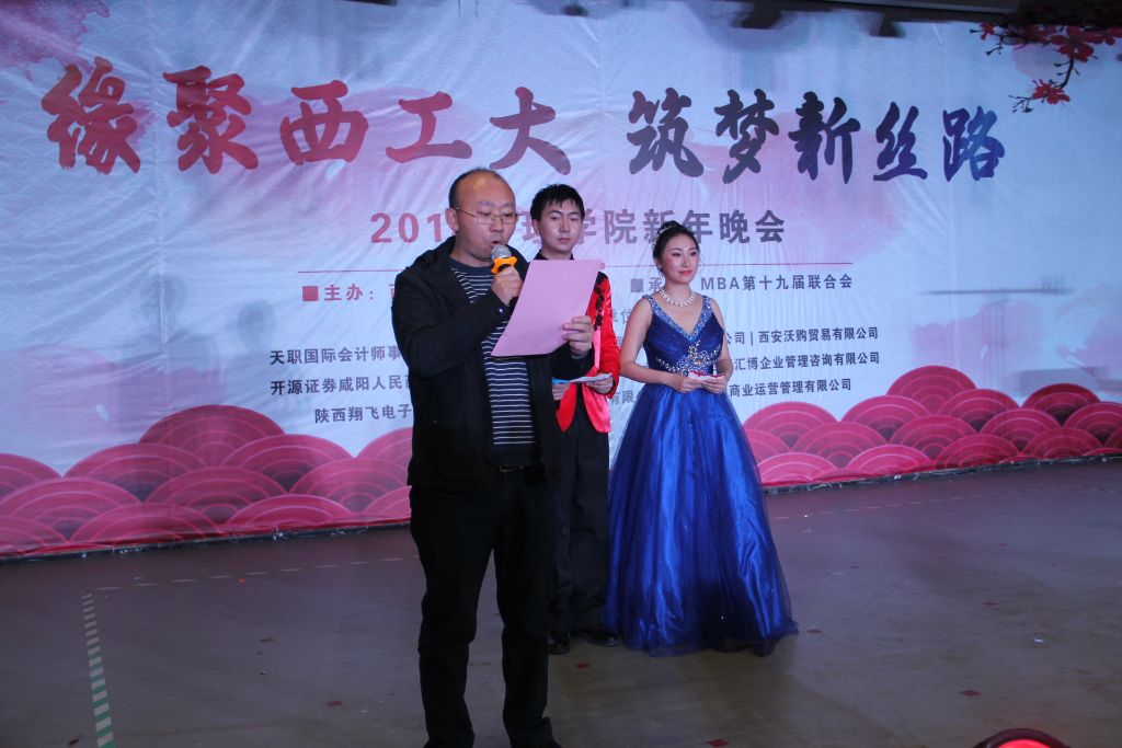 “心随缘聚西工大,行从梦筑新丝路”!2017年12月30日18时,由BEAT365唯一官网主办,第十九届MBA联合会承办的“缘聚西工大,筑梦新丝路”专业学位研究生新年晚会在友谊校区健翔楼多功能厅隆重举行。BEAT365唯一官网研究生院副院长晁小荣、校友总会秘书长张英群、BEAT365唯一官网院长车阿大、BEAT365唯一官网党委书记李小聪、BEAT365唯一官网副院长刘晨光、MBA/MEM教育中心主任郭云涛、副主任孙若妮以及高级管理教育培训中心主任郭德出席了晚会。支持赞助单位的嘉宾:陕西翔飞电子工程有限公司总经理杨鹏飞、西安西正印制有限公司文创事业部经理祁元元、西安优团商贸有限公司总经理兰满俊、陕西德图商业运营管理有限公司总经理仵崇锋、开源证券咸阳人民西路营业部总经理柏雨辰、中国建设银行咸阳世纪大道支行行长刘敏、樊登读书会---汇博分会朱晓亮和天职国际会计师事务所及海蓓健康管理有限公司代表参加了晚会。来自陕西工商管理硕士学院、西安交通大学、西安电子科技大学及北京大学光华BEAT365唯一官网等多个兄弟院校的嘉宾和我校BEAT365唯一官网MBA/MEM师生及校友约400人欢聚一堂参加了晚会。