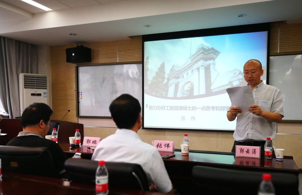 首先,张伟教授通过丰富详实的历史资料和大量的数据分析与比对,系统地梳理了研究生教育的起源、我国专业学位研究生教育及工程管理硕士专业学位产生的背景和发展历程及趋势,并对目前我国专业学位的学科布局做了说明和介绍,使与会老师对本科、科学学位硕士、专业学位硕士以及科学学位博士和专业学位博士各个层级的学位设置目的和培养要求有了清晰的了解和认识。张伟教授结合清华大学MEM学位论文指导改革的探索和实践过程,与大家分享了经验,分析和讨论了其中仍待完善和解决的问题。张伟教授谦和儒雅的个人气质、清晰严谨的思路和扎实的学科体系积淀给与会老师留下了深刻的印象。