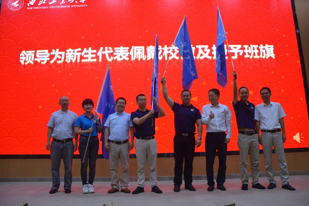 2018级MBA1203班韩勇、2018级MEM1202班廖阔、2018级EMBA班代敏及2018级MBA1204班陈文佩4名新生代表分别发言,表示要努力学习,提高自己,不辜负在校学习、与同学们相处的美好时光。在隆重的授旗仪式中,车阿大院长、郭云涛副院长、韩建新副院长以及肖平主任分别为4名新生代表佩戴校徽并授予班旗,同学们心中的归属感悠然而生。新生代表韩勇同学带领全体新生的宣誓,更加深了西工大学子的信念。
