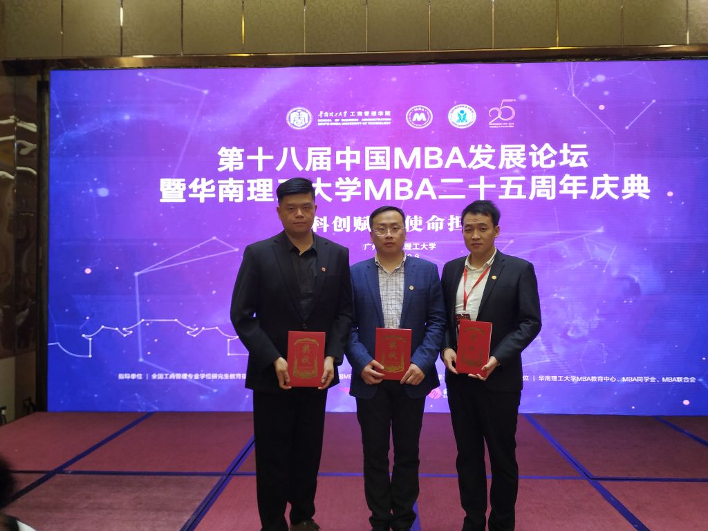 12月8-9日,“第十八届中国MBA发展论坛”在华南理工大学盛大召开。我校MBA校友杨剑龙荣获“中国MBA十大精英人物”,周飞虎、吴佳鸣分别获得“中国MBA新秀100”和“中国MBA校友创业企业新星”称号。