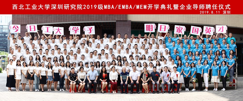 随后,与会领导为8位新生代表佩戴校徽并授予班旗,金光闪闪的校徽、配有西工大标志的班旗,隆重的授旗仪式将当天的典礼推向了高潮。2019级MBA1203班新生代表吕仁杰、EMBA新生代表胡君、MEM1202班新生代表闫昊以及MBA1204班新生代表张嘉苪4位同学的发言,让大家回忆起一年多躬耕苦读的酸甜苦辣,也让同学们憧憬着未来三年忙碌而充实的校园生活。