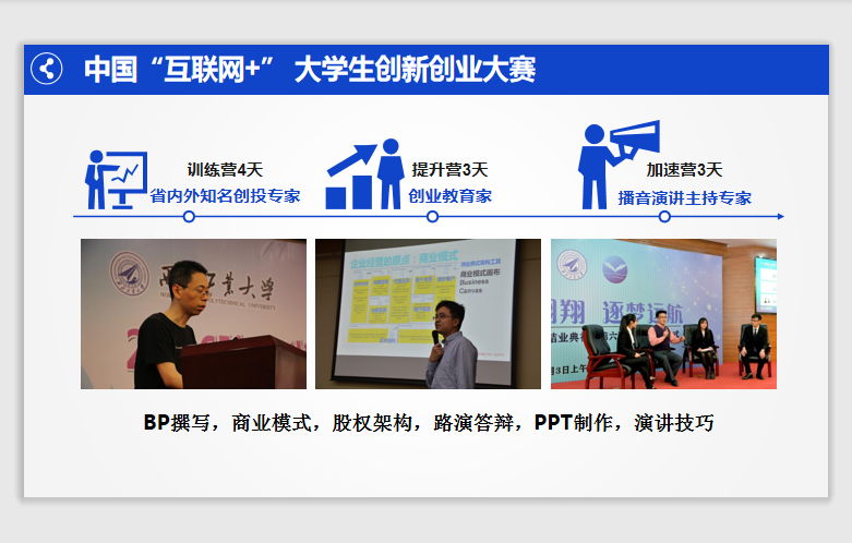 商业计划书是创业团队的名片。顾老师围绕如何写好一份吸引人眼球的商业计划书,如何做高质量的项目路演PPT,如何做高质量的项目展示视频等做了详细的讲解和演示。互动环节中,同学们就一些可能的创新项目向顾老师进行了咨询,顾老师都耐心细致的提出了自己的建议,鼓励同学们积极参与到创业大赛中,将自己的项目和团队带到一个更高更广阔的平台。