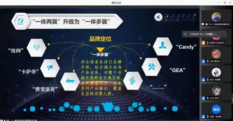 此次案例入学教育分为两个批次进行,每个批次共40支队伍参加,每个批次第一周下发比赛案例,经过为期一周的紧张准备,队员们进行两两对抗的案例比赛。第一批次的MBA新生以《广西昆仑公司:创业机会的辨识与开发》为比赛案例,第二批次MEM和MPAcc新生以《“一体两翼”:海尔集团的多品牌定位之道》为比赛案例。在指导教师的指导下,队员们充分开展头脑风暴,深挖团队集体智慧。正常工作之余,队员们挑灯夜战、争分夺秒,科学运用战略、营销、创业、财务等管理理论以及PEST、SWOT、STP、五力模型等管理分析工具,广泛收集资料,对案例企业进行深入研究,在分析案例企业过去成长的基础上,归集存在的问题,挖掘内在成因,提出有效可行的解决方案和保障措施。在线上比赛中,团队分工明确、配合默契,队员们各抒己见、妙语连珠、你来我往、火花四溅,问答环节团队双方有的放矢、一语破的,呈现了精彩的巅峰对决。评委老师针对各队参赛情况和队员场上表现进行针对性提问和点评,使得比赛精彩不断,呈现出较高的专业水准。