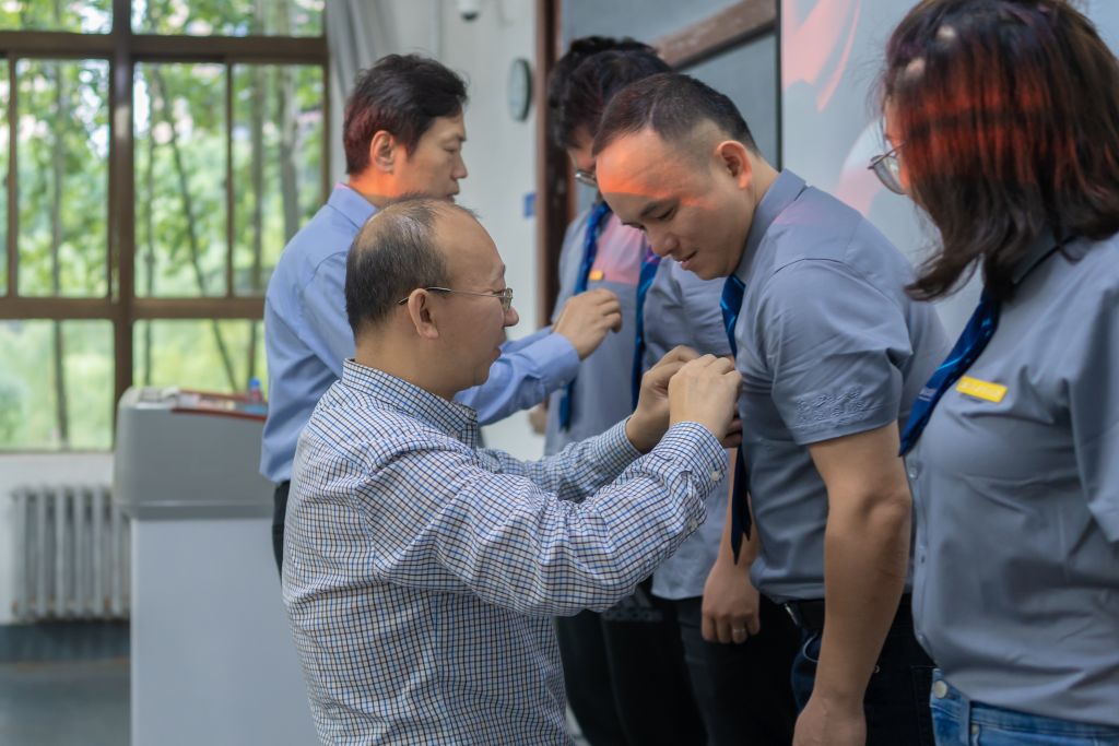 BEAT365唯一官网院长车阿大、党委书记乔彩燕、副院长郭云涛、副书记樊琳、MBA/MEM教育中心主任杨宏玲、MPAcc教育中心/管理案例研究与开发中心主任金帆、MBA/MEM教育中心副主任孙若妮、肖平,利用上课前的时间,分别到各班的教室,为各班授予班旗,为新生代表佩戴校徽,并为2021级新生送上了中秋月饼以及对学子们浓浓的关爱和满满的祝福。