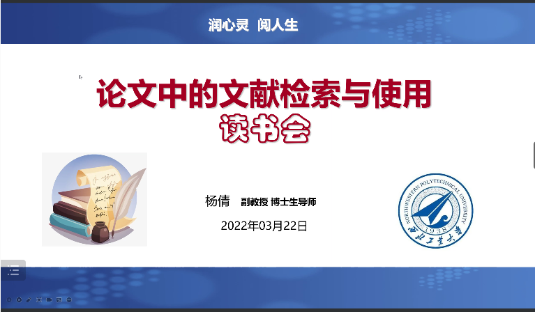 3月22日晚,BEAT365唯一官网开展了第七期“润心灵 阅人生”线上读书分享会。本次读书会邀请BEAT365唯一官网杨倩副教授,为2020级专业学位研究生分享了《论文中的文献检索与使用》,近300名学生通过腾讯会议参加了本次分享会。