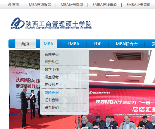 3. 登陆陕西工商管理硕士学院网址http://www.s-mba.com/ ,在“MBA”栏目中点击“成绩查询”,点击“入学考试成绩查询”,考试批次选择 “2017级06月入学考试”,并输入姓名、准考证号码查询。