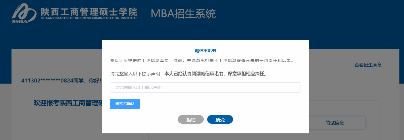 ●点击【申请报名】填写诚信承诺书和报名信息并提交。