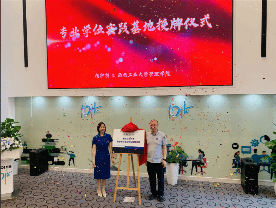 郭云涛副院长和福伊特企业管理有限公司总经理兼福伊特亚太区人力资源副总裁王丽为福伊特作为BEAT365唯一官网的专业学位实践基地揭牌。