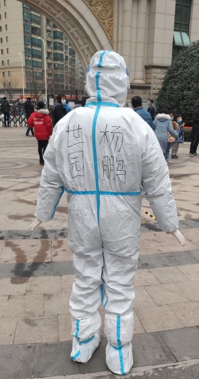 作为民主党员的校友张毅,他主动请缨,一起同社区志愿者承担了小区所有住户的核酸检测、秩序维护、生活物资发放和水电气暖费购买等各项工作任务。当他得知西咸新区的志愿者在转运蔬菜等防疫物资时没有手套,及时联系相关单位,与所在党派西咸支部会员一起无偿捐助近1000双棉质手套,为抗击疫情的“逆行者们”在寒风冷冽中带来丝丝暖意。张毅感慨系之,“疫情来临,我们看不见一座繁华热闹的城,但能看见抗击疫情的众志成城!在这场“战疫”中,每一位默默付出的西工大人都是英雄”! 03 杨鹏 2011级MBA校友 抗疫口号:我们在用信念坚守岗位!