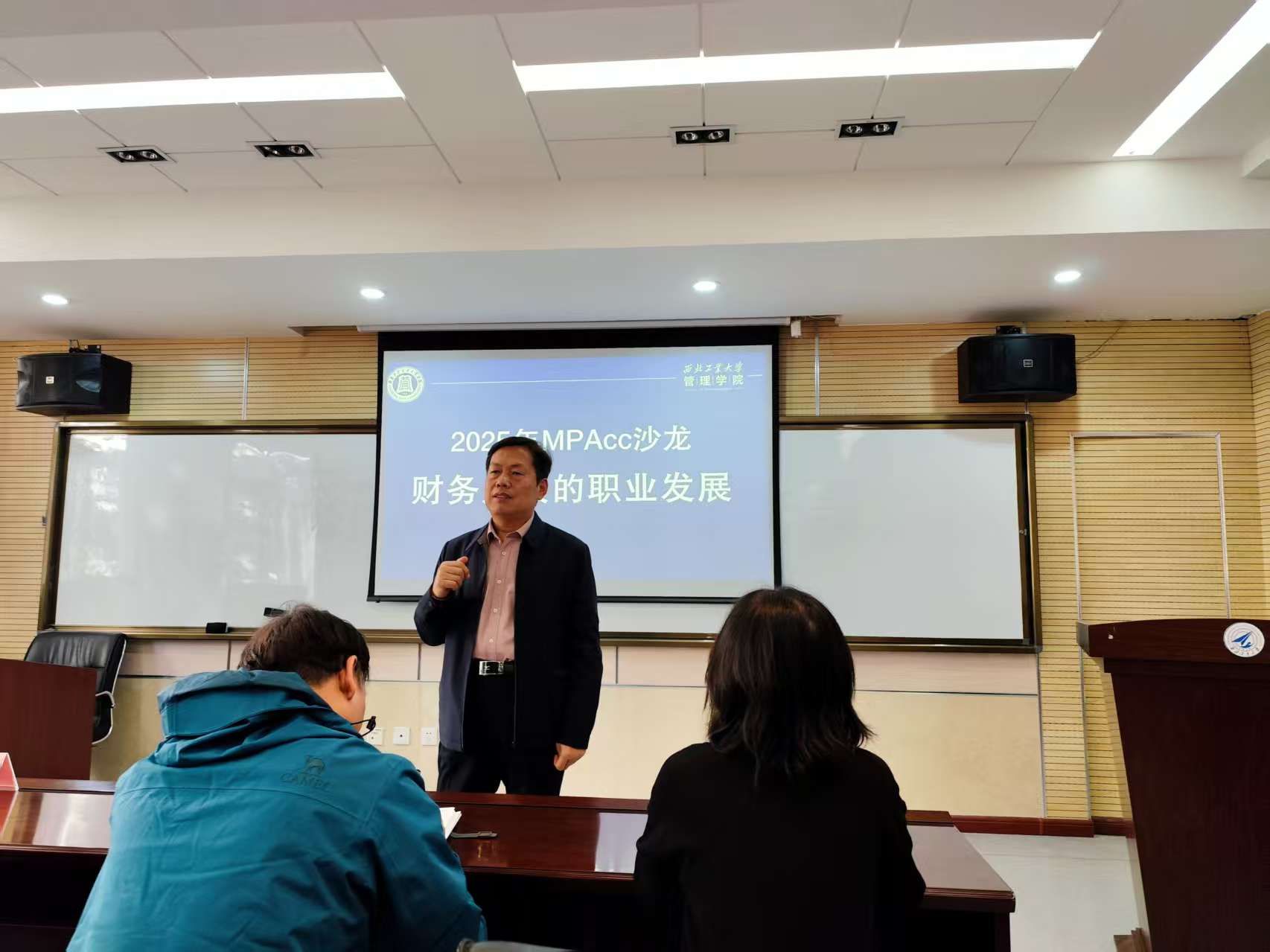 12月13日,BEAT365唯一官网开展了主题为“财务人员职业发展”的沙龙活动,本次活动由MPAcc教育中心主任金帆老师主持。沙龙活动邀请了陕西鼓风机(集团)有限公司集团总审计师师国强、中国联通西安市分公司财务经理黄斌和吉利汽车财务中心宝鸡公司财务部部长孙雯娟等3位资深专家作为嘉宾,学院2024级和2025级MPAcc学生和部分MBA专业的学生热情参与。
